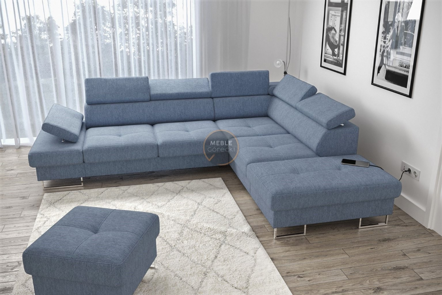 Rohová sedacia súprava GALAXY s funkciou spania 225x280 - modrá, pravá