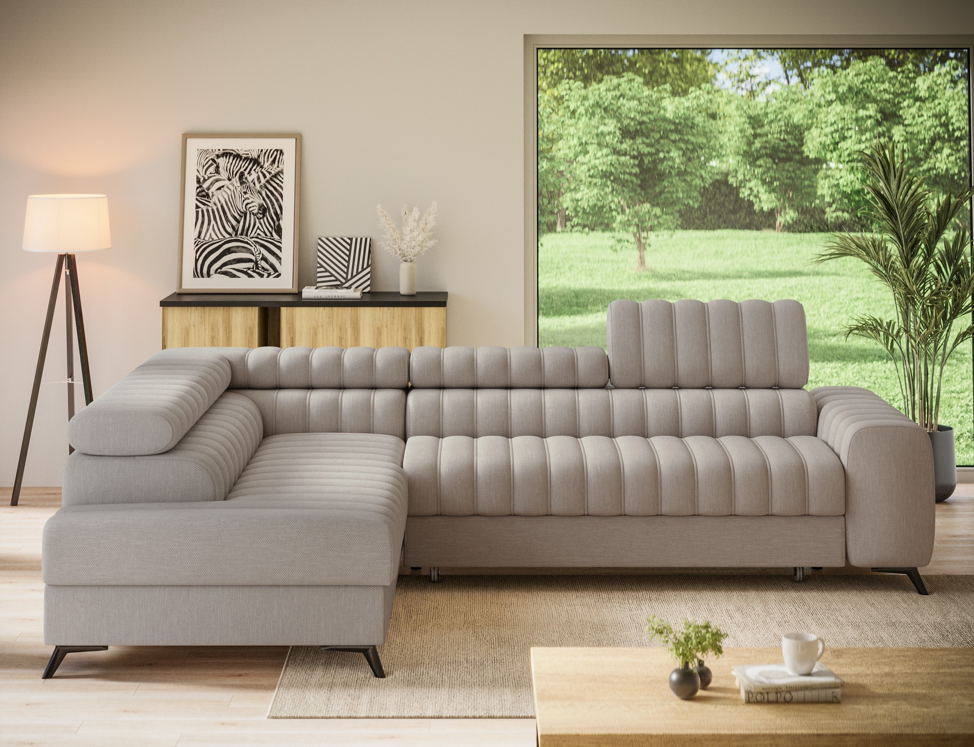 Rohová sedacia súprava KANEDO je ideálnou voľbou pre tých, ktorí hľadajú spojenie moderného dizajnu, funkčnosti a komfortu. Jej praktické funkcie a elegantný vzhľad z nej robia perfektný doplnok pre každú obývačku. Nechajte sa okúzliť jej štýlom a užite si chvíle relaxácie v pohodlí vášho domova.