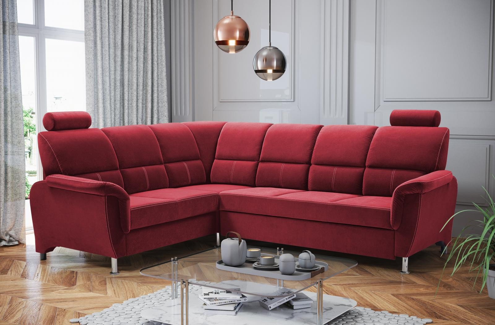 Rohová sedacia súprava L Nadia Velva 10 - vínová