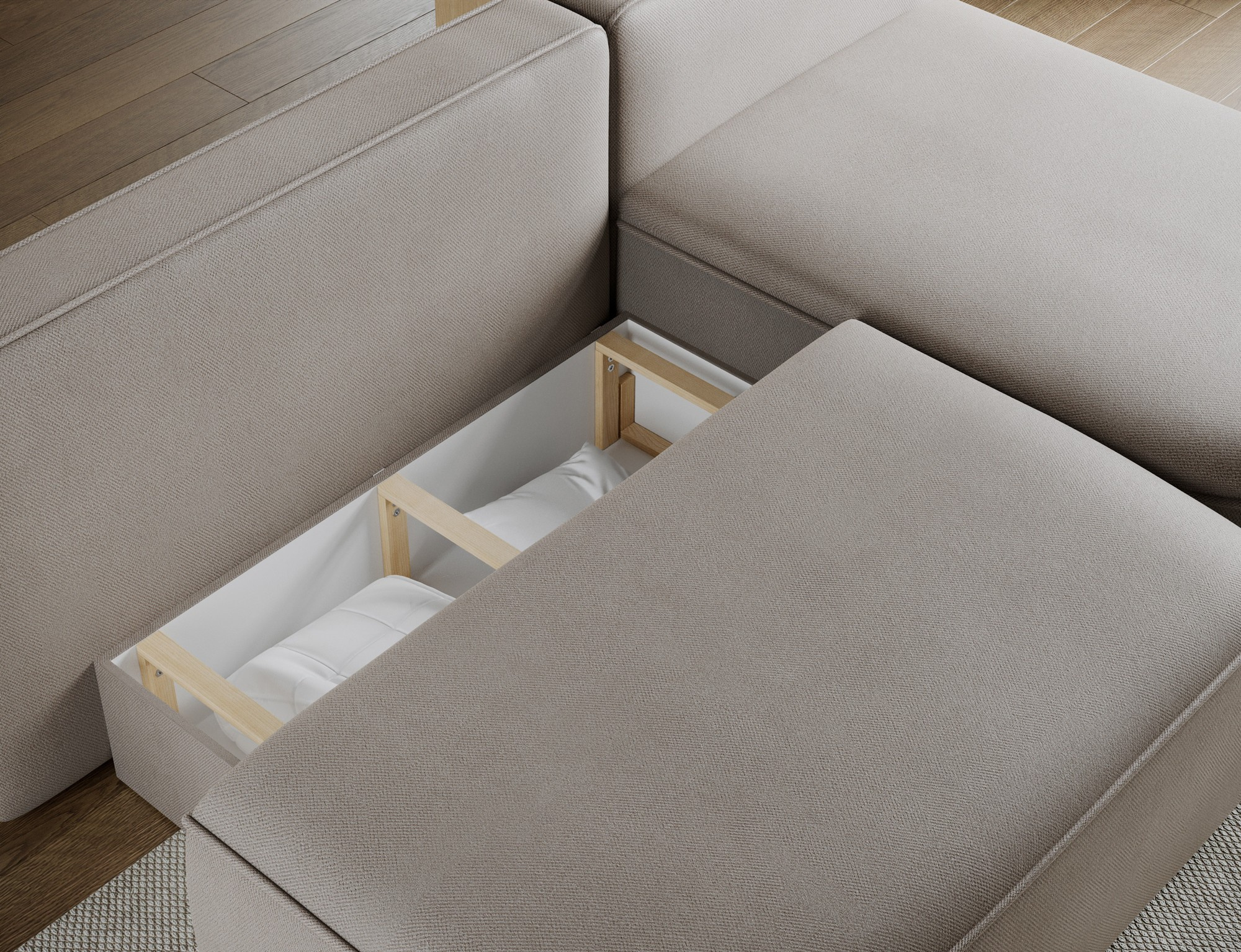 Ďalšou praktickou vlastnosťou je úložný priestor, ktorý je diskrétne integrovaný do konštrukcie súpravy. Tento priestor je ideálny na uskladnenie posteľnej bielizne, vankúšov alebo ďalších predmetov, ktoré chcete mať po ruke, ale zároveň ich mať úhľadne upratané.
