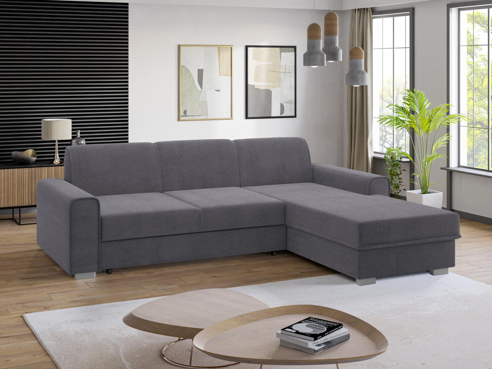 Pohodlná pohovka je jedným z najdôležitejších kusov nábytku v každej obývačke. Sedacia súprava Lubor je ideálnou kombináciou pohodlia, praktickosti a moderného dizajnu. Táto sedacia súprava priamo nabáda k odpočinku, napríklad. sledovanie televízie. Sedáky sú vyplnené kombináciou pružín faliste a kvalitnej PUR peny. Jednoduchým rozložením postele pomocou stroja vznikne posteľ vhodná na príležitostné spanie. Samozrejme, k dispozícii je aj úložný priestor, ktorý môžete využiť na posteľnú bielizeň. Sedacie súpravy ponúkame v kvalitných poťahových látkach v niekoľkých farbách, ktoré tiež nájdete v našej ponuke. Zobrazené príslušenstvo a dekorácie nie sú zahrnuté v cene pohovky. Zobrazenie farieb na fotografii sa môže líšiť od skutočnosti. Fotografia rozkladacej pohovky je len ilustračná. Správny farebný odtieň je zobrazený na úvodnej fotografii.
