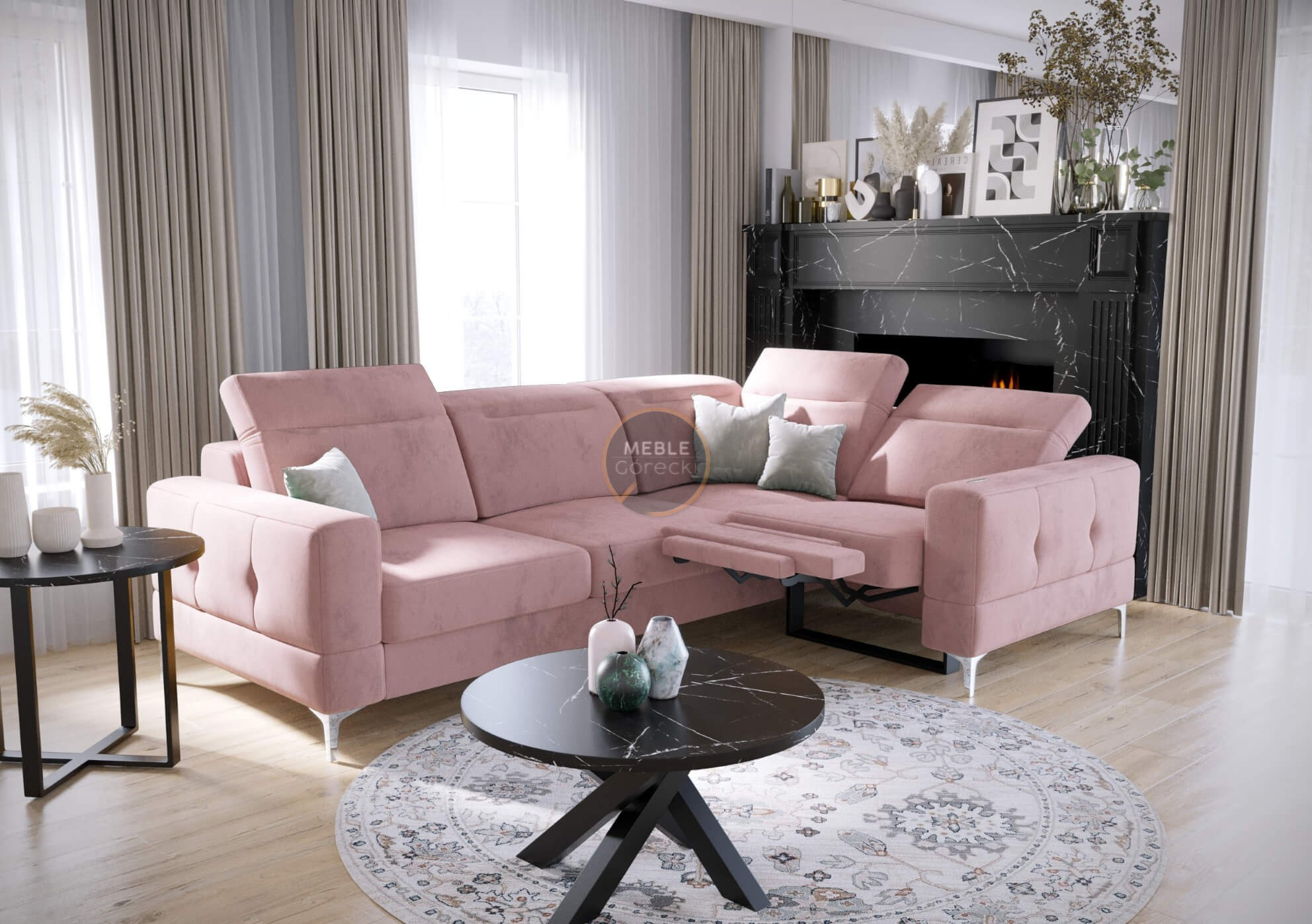 Rohová sedacia súprava MALIBU, relax s funkciou spania 185x250 cm - pravá, ružová