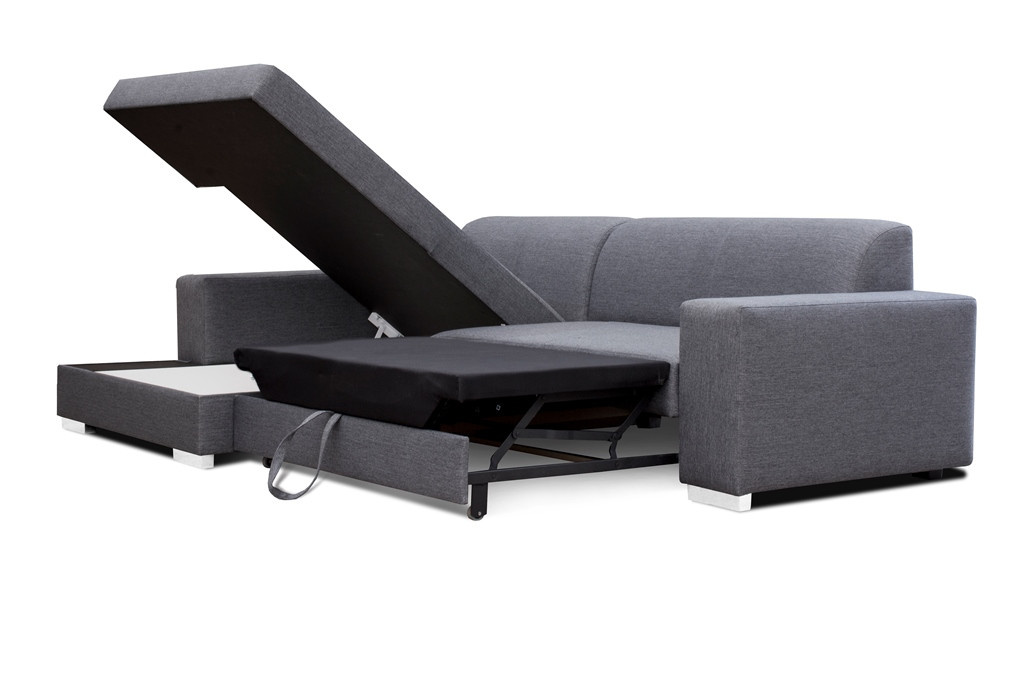 Rohová pohovka MEXICO má moderný dizajn, ktorý sa dokonale hodí do minimalistickej alebo škandinávskej obývačky. Štýlová rohová pohovka je rozkladací kus nábytku, ktorý je k dispozícii v pravej alebo ľavej verzii. Rohová pohovka MEXICO v tvare písmena L má priestranný úložný priestor na lôžkoviny a je vybavená aj funkciou spania, takže sa dá rozložiť. Rohová pohovka pre tri osoby je umiestnená na drevenom ráme a pochrómovaných nožičkách, vďaka čomu je nielen stabilným a odolným kusom nábytku, ale aj mimoriadne estetickým a originálnym. Nábytok je vyplnený vlnitými pružinami a čalúnnickou penou, materiálmi, ktoré zabezpečujú správnu pružnosť - vďaka nim sa na rohovej pohovke ani pri neustálom používaní nevytvoria nevzhľadné otlaky. Rohová sedacia súprava MEXICO s bočnicami je kus nábytku, ktorý môže byť čalúnený látkou, koženkou. Moderná rohová pohovka je k dispozícii v širokej škále farieb.