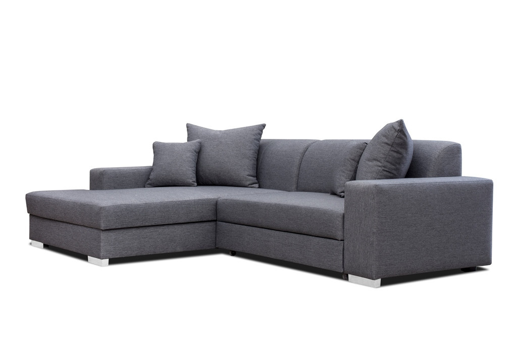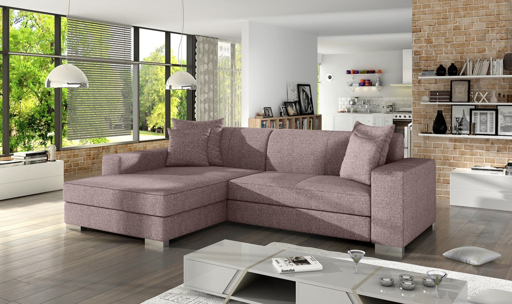 Rohová pohovka MEXICO má moderný dizajn, ktorý sa dokonale hodí do minimalistickej alebo škandinávskej obývačky. Štýlová rohová pohovka je rozkladací kus nábytku, ktorý je k dispozícii v pravej alebo ľavej verzii. Rohová pohovka MEXICO v tvare písmena L má priestranný úložný priestor na lôžkoviny a je vybavená aj funkciou spania, takže sa dá rozložiť. Rohová pohovka pre tri osoby je umiestnená na drevenom ráme a pochrómovaných nožičkách, vďaka čomu je nielen stabilným a odolným kusom nábytku, ale aj mimoriadne estetickým a originálnym. Nábytok je vyplnený vlnitými pružinami a čalúnnickou penou, materiálmi, ktoré zabezpečujú správnu pružnosť - vďaka nim sa na rohovej pohovke ani pri neustálom používaní nevytvoria nevzhľadné otlaky. Rohová sedacia súprava MEXICO s bočnicami je kus nábytku, ktorý môže byť čalúnený látkou, koženkou. Moderná rohová pohovka je k dispozícii v širokej škále farieb.