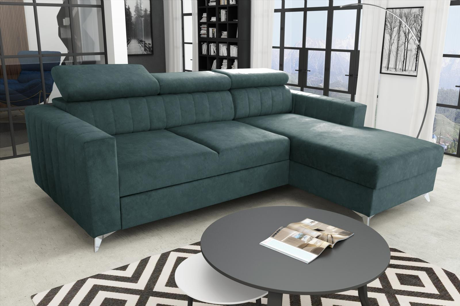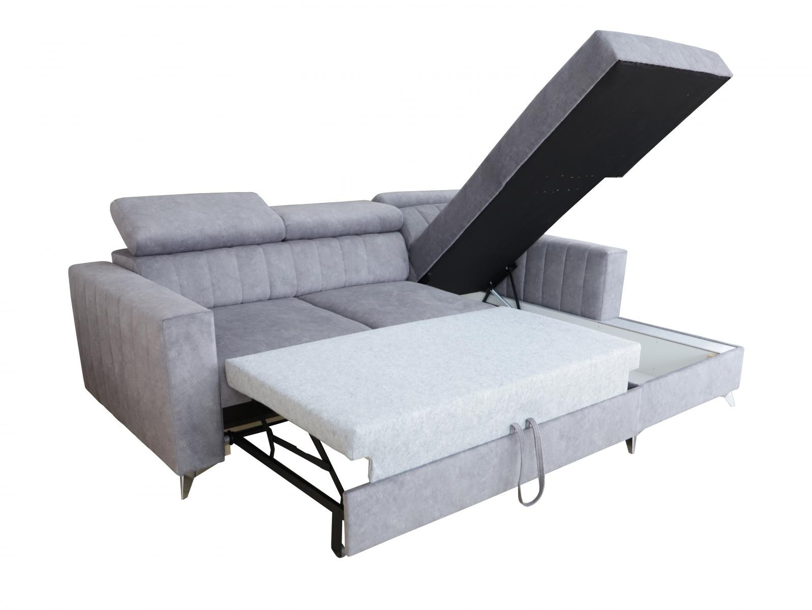 Sedacia súprava Mildred osloví každého, kto uprednostňuje moderný vzhľad a zároveň pohodlie a praktickosť. je potiahnutá kvalitnou čalúnnickou látkou s kontrastným prešívaním. Pohovka je veľmi pohodlná a dostatočne veľká na posedenie s priateľmi alebo rodinou. V prípade, že návšteva zostane cez noc, je pohovka vybavená rozkladacím gaučom, vďaka ktorému sa dá ľahko premeniť na priestrannú posteľ. Pohovka má napríklad praktický úložný priestor, ktorý môžete využiť.na posteľnú bielizeň. Pohodlie pri sedení zabezpečuje výplň sedacích vankúšov, ktorú tvorí kombinácia pružín faliste s kvalitnou PUR penou. Komfort a pohodlie pri odpočinku zvyšuje sklápacia opierka hlavy. Sedacia súprava je k dispozícii v ľavej a pravej verzii.