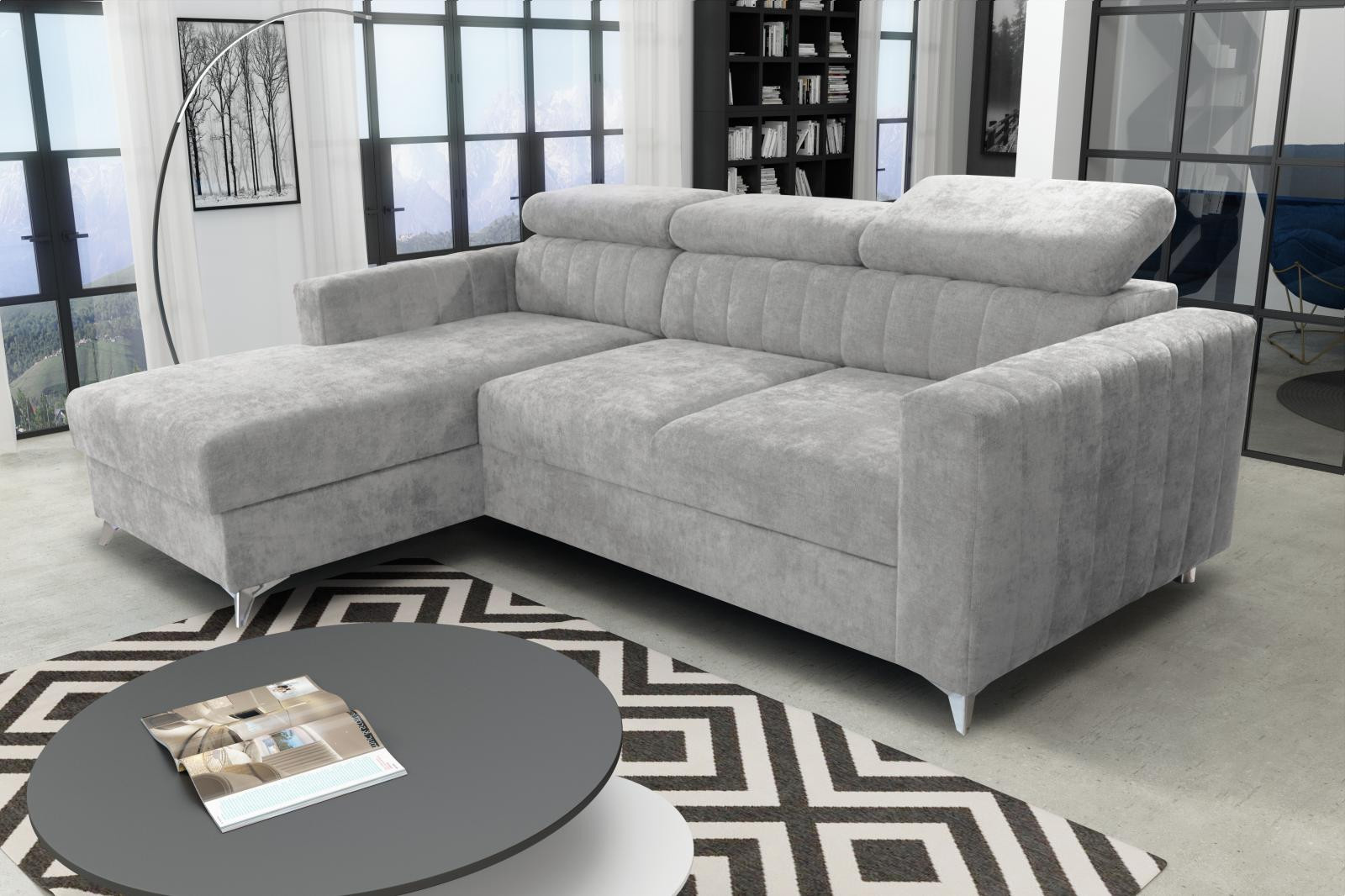 Sedacia súprava Mildred osloví každého, kto uprednostňuje moderný vzhľad a zároveň pohodlie a praktickosť. je potiahnutá kvalitnou čalúnnickou látkou s kontrastným prešívaním. Pohovka je veľmi pohodlná a dostatočne veľká na posedenie s priateľmi alebo rodinou. V prípade, že návšteva zostane cez noc, je pohovka vybavená rozkladacím gaučom, vďaka ktorému sa dá ľahko premeniť na priestrannú posteľ. Pohovka má napríklad praktický úložný priestor, ktorý môžete využiť.na posteľnú bielizeň. Pohodlie pri sedení zabezpečuje výplň sedacích vankúšov, ktorú tvorí kombinácia pružín faliste s kvalitnou PUR penou. Komfort a pohodlie pri odpočinku zvyšuje sklápacia opierka hlavy. Sedacia súprava je k dispozícii v ľavej a pravej verzii.