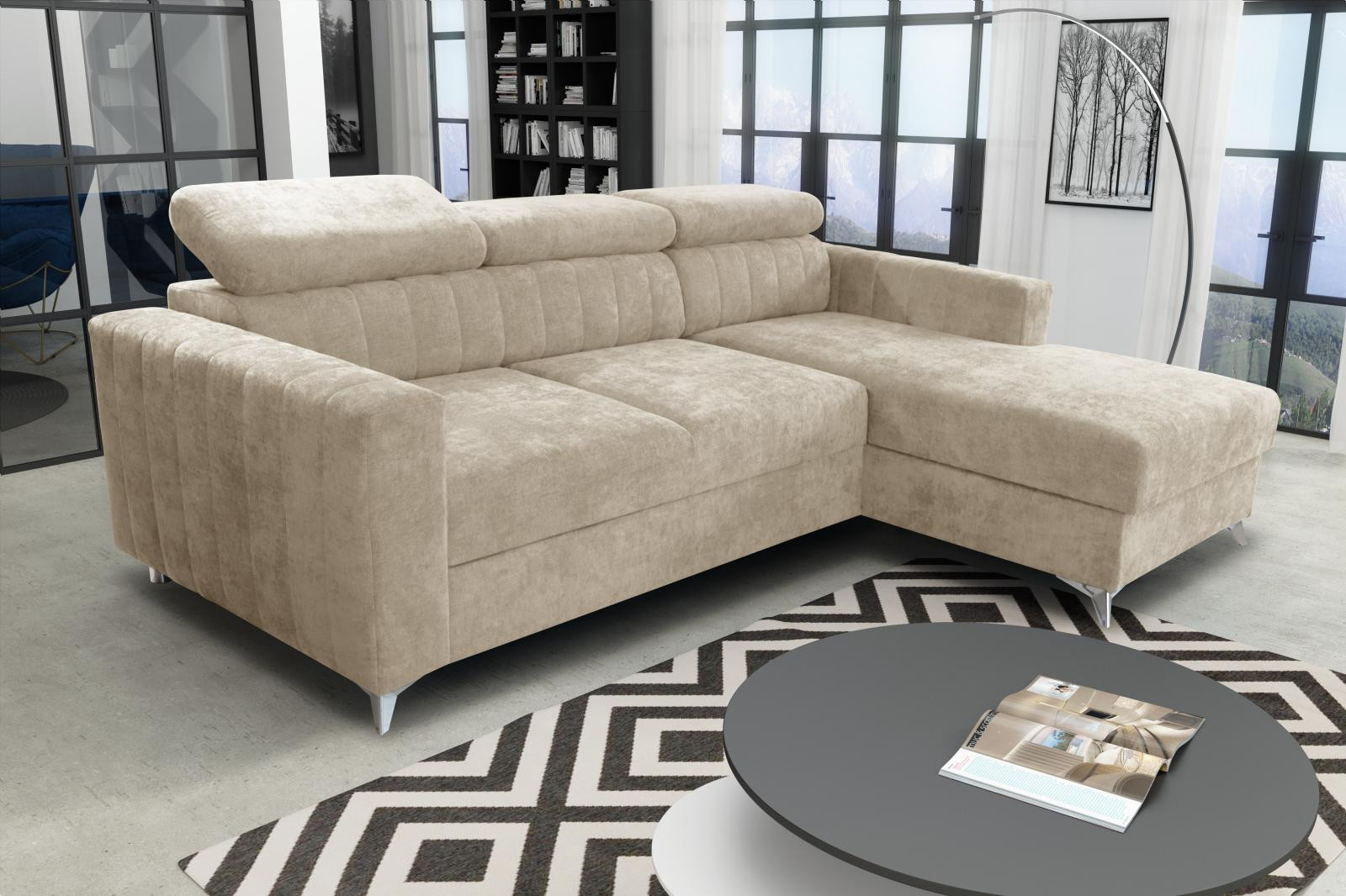 Sedacia súprava Mildred osloví každého, kto uprednostňuje moderný vzhľad a zároveň pohodlie a praktickosť. je potiahnutá kvalitnou čalúnnickou látkou s kontrastným prešívaním. Pohovka je veľmi pohodlná a dostatočne veľká na posedenie s priateľmi alebo rodinou. V prípade, že návšteva zostane cez noc, je pohovka vybavená rozkladacím gaučom, vďaka ktorému sa dá ľahko premeniť na priestrannú posteľ. Pohovka má praktický úložný priestor, ktorý môžete využiť napríklad.na posteľnú bielizeň. Pohodlie pri sedení zabezpečuje výplň sedacích vankúšov, ktorú tvorí kombinácia pružín faliste s kvalitnou PUR penou. Komfort a pohodlie pri odpočinku zvyšuje sklápacia opierka hlavy. Sedacia súprava je k dispozícii v ľavej a pravej verzii.