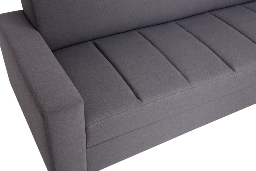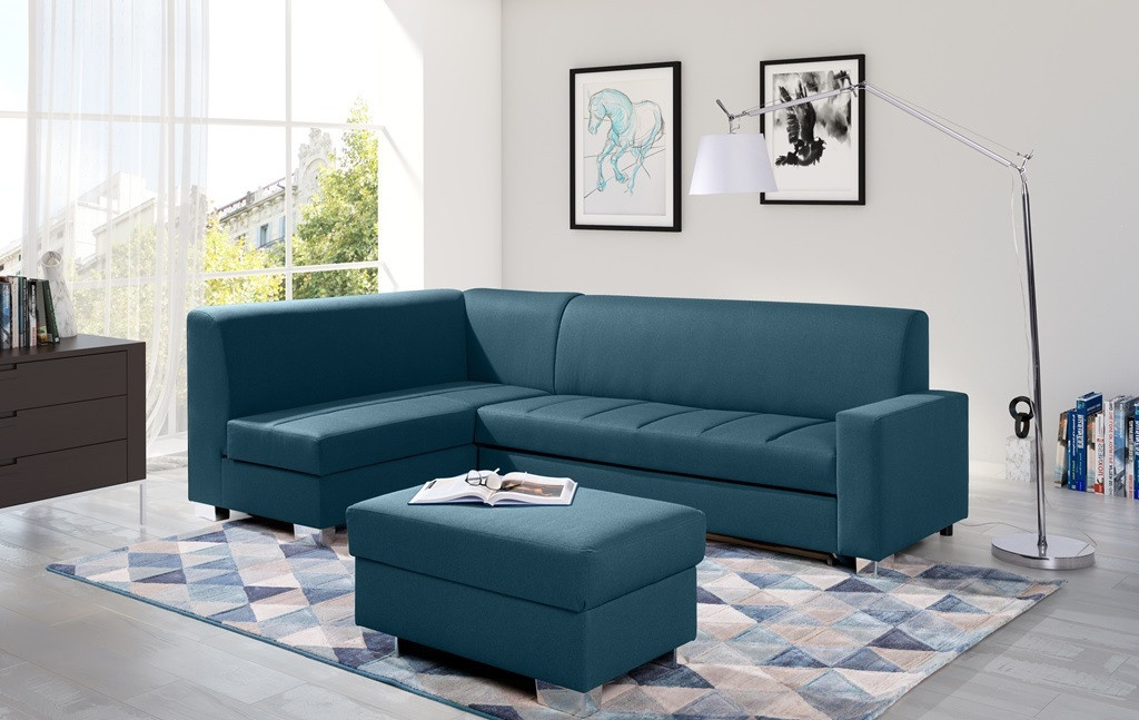 Rohová sedacia súprava MIX je k dispozícii s moderným a praktickým taburetom, na ktorom môžete nielen voľne sedieť, ale ho aj používať ako podnožku pri odpočinku. Rohová sedacia súprava v tvare L je k dispozícii v pravostrannej alebo ľavostrannej verzii (nie je univerzálna), takže si prezentovaný model môžete ľubovoľne prispôsobiť svojim individuálnym preferenciám. Rohová sedacia súprava stojí na chrómových nožičkách, ktoré jej dodávajú moderný charakter. Štýlová rohová pohovka s ozdobným prešívaním viditeľným na sedadle je čalúnená látkou, ktorú si môžete vybrať zo širokej škály farieb. V sedacej časti sú použité vlnité pružiny a čalúnnická pena T-30, takže na rohovej pohovke alebo taburete MIX nevznikajú nevzhľadné preliačiny ani deformácie. Jednostranný nábytok je umiestnený na drevenom ráme pre väčšiu odolnosť a stabilitu. Ponúkaná rohová pohovka s mierne tvarovaným operadlom je vybavená funkciou na spanie, ktorá umožňuje jej efektívne rozloženie, ako aj priestrannou nádobou na lôžkoviny, do ktorej sa ľahko zmestí prikrývka, vankúše a deky. Spolu s pufom bude model MIX pôsobivo vyzerať v modernom a minimalistickom usporiadaní a zároveň poskytne komfort a pohodlie pri odpočinku a spánku.