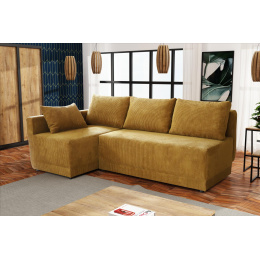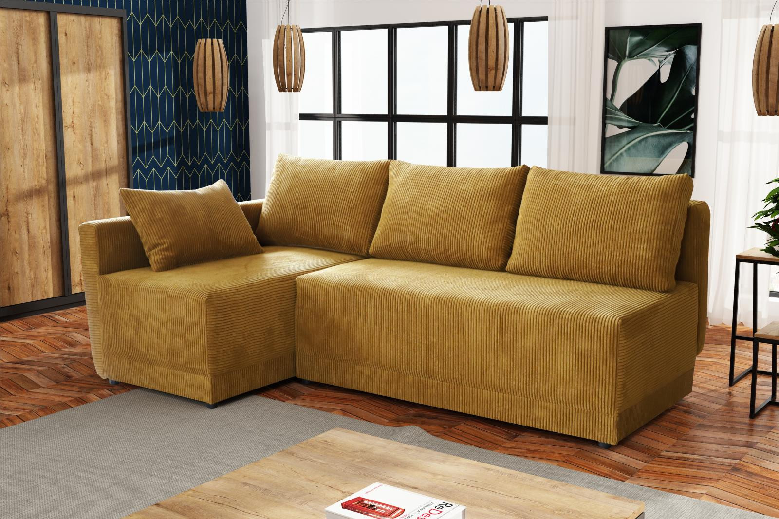 Moderná rohová sedacia súprava vás zaujme svojím jednoduchým dizajnom. Súčasťou sú vankúše, vďaka ktorým je pohovka veľmi pohodlná. Vďaka svojim rozmerom je vhodný aj do menších miestností. je praktická, rozkladacia posteľ sa dá použiť na príležitostné spanie, plocha lôžka je 198x133 cm. Vo vnútri pohovky sa nachádza úložný priestor, ktorý možno využiť na uloženie posteľnej bielizne. Sedadlo je vyplnené bonellovými pružinami v kombinácii s kvalitnou PUR penou. Sedacie súpravy ponúkame vo viacerých farbách. Fotografie rozkladacej pohovky sú len ilustračné.správny farebný odtieň je na úvodnej fotografii.