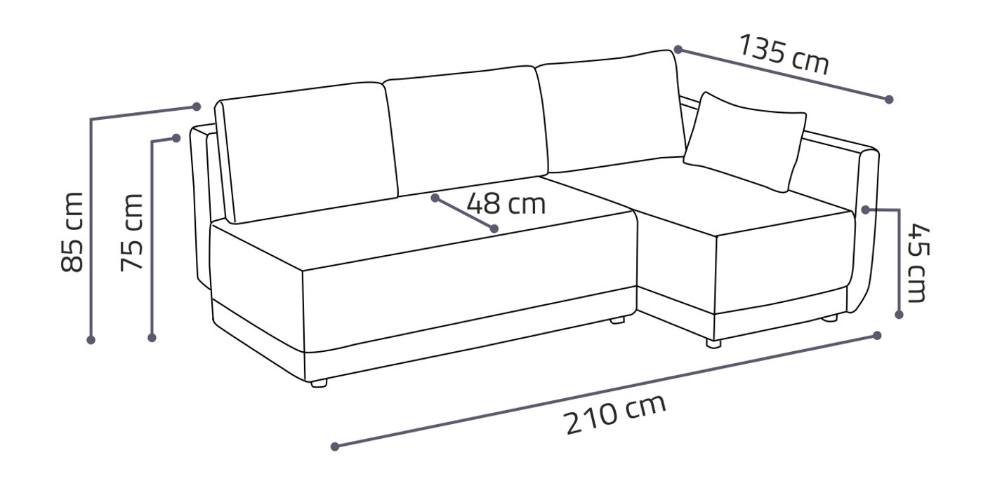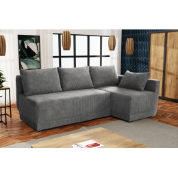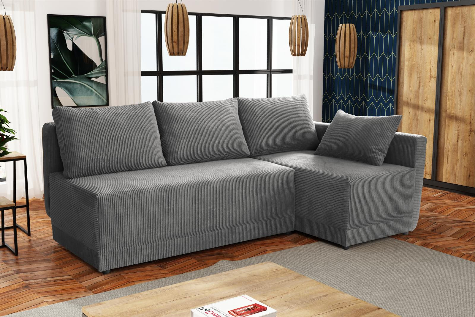 Moderná rohová sedacia súprava vás zaujme svojím jednoduchým dizajnom. Súčasťou sú vankúše, vďaka ktorým je pohovka veľmi pohodlná. Vďaka svojim rozmerom je vhodný aj do menších miestností. je praktická, rozkladacia posteľ sa dá použiť na príležitostné spanie, plocha lôžka je 198x133 cm. Vo vnútri pohovky sa nachádza úložný priestor, ktorý možno využiť na uloženie posteľnej bielizne. Sedadlo je vyplnené bonellovými pružinami v kombinácii s kvalitnou PUR penou. Sedacie súpravy ponúkame vo viacerých farbách. Fotografie rozkladacej pohovky sú len ilustračné.správny farebný odtieň je na úvodnej fotografii.