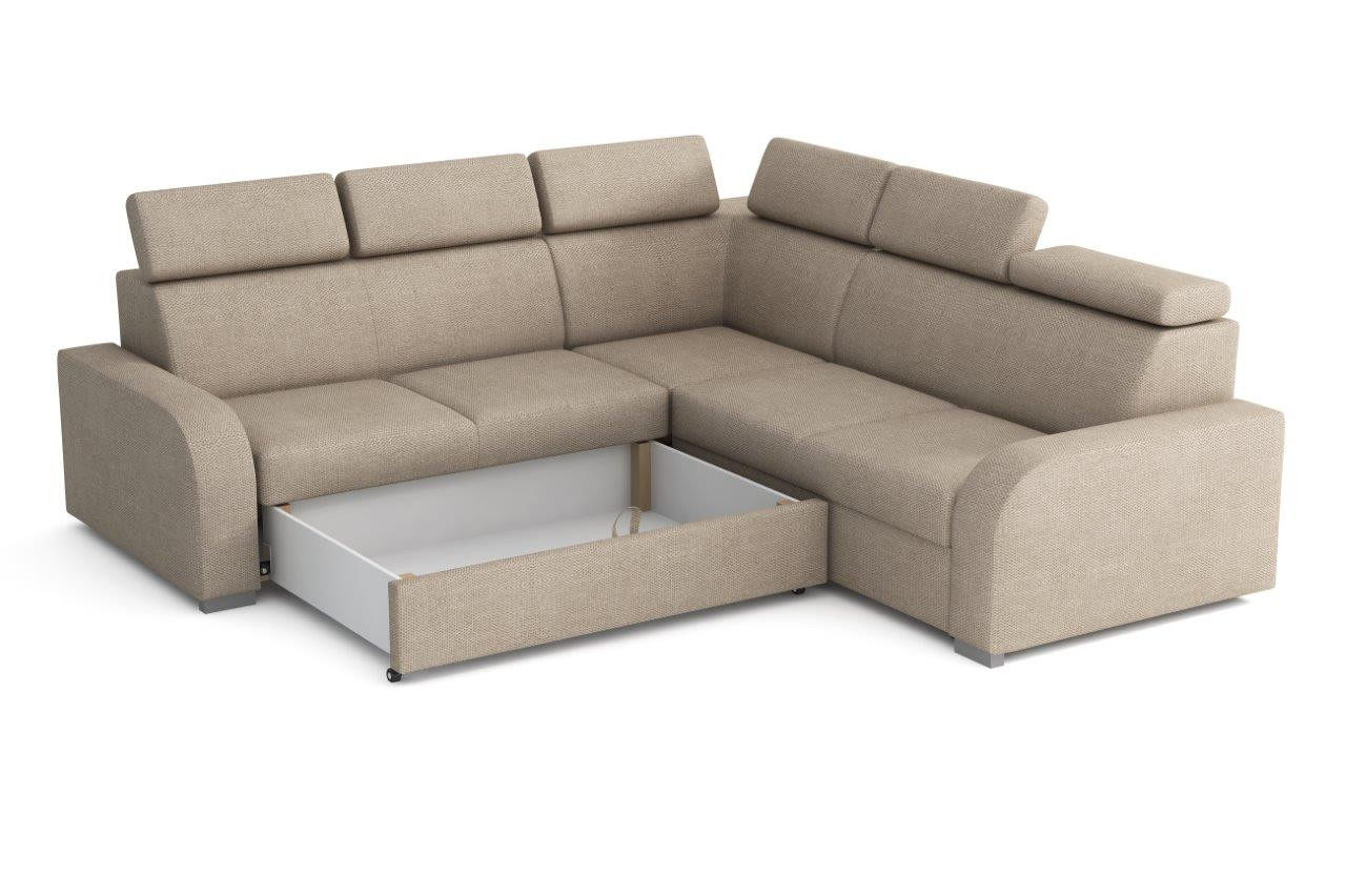 Sedacia súprava Norway je vyrobená v jednoduchom elegantnom dizajne, ktorý sa hodí do všetkých interiérov. Jej veľkou prednosťou je univerzálna možnosť zostavenia. Tzn. že podľa potreby môžete mať ľavú alebo pravú stranu, čo je výhoda pri zariaďovaní obývacej izby. Nemusíte premýšľať, do ktorého rohu sedaciu súpravu postavíte a jednoducho si ju podľa potreby prispôsobíte. Sedacia súprava je rozkladacia. Jednoduchým rozložením vytvoríte dostatočne veľké lôžko na príležitostné prespanie Vašej návštevy. Samozrejmosťou je aj praktický úložný priestor, ktorý môžete využiť napr. na posteľnú bielizeň. Sedacia súprava je potiahnutá kvalitnou látkou a ponúkame ju v niekoľkých odtieňoch. Výplň sedákov tvorí kombinácia vlnitých pružín s kvalitnou HR penou. Pre pohodlie pri sedení a odpočinku, je sedacia súprava vybavená polohovateľnými opierkami hlavy. K sedacej súprave je možné dokúpiť kreslo alebo taburet. Cena je uvedená za rohovú sedaciu súpravu. Zobrazenie farieb na fotografii sa môže od skutočnosti líšiť.