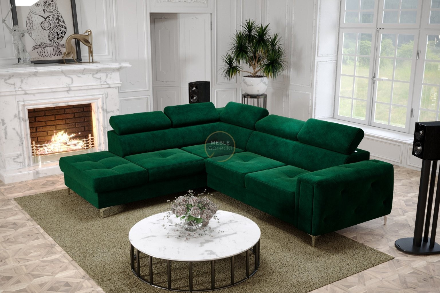 Kolekcia čalúneného nábytku Orion je niečo, čo nikde inde nenájdete! Charakteristickým prvkom sú krásne zdobené, prešívané boky v štýle glamour. Okrem estetických prvkov stojí za to venovať pozornosť dokončeniu v podobe nastaviteľných opierok hlavy, ktoré uľahčia prispôsobenie výšky operadla tak, aby bola pre vás ideálna. Vysoké 13 cm kovové nohy podčiarkujú celok a dodávajú konštrukcii ľahkosť.