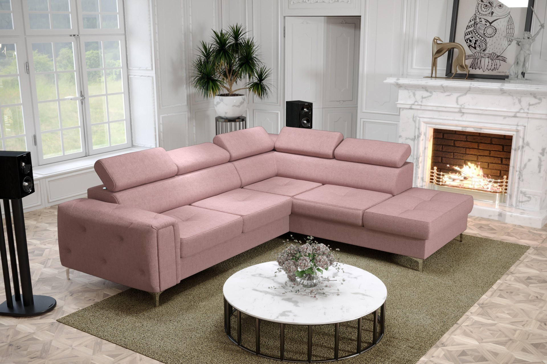 Rohová sedacia súprava ORION II s funkciou spania 225x255 cm - ružová, pravá