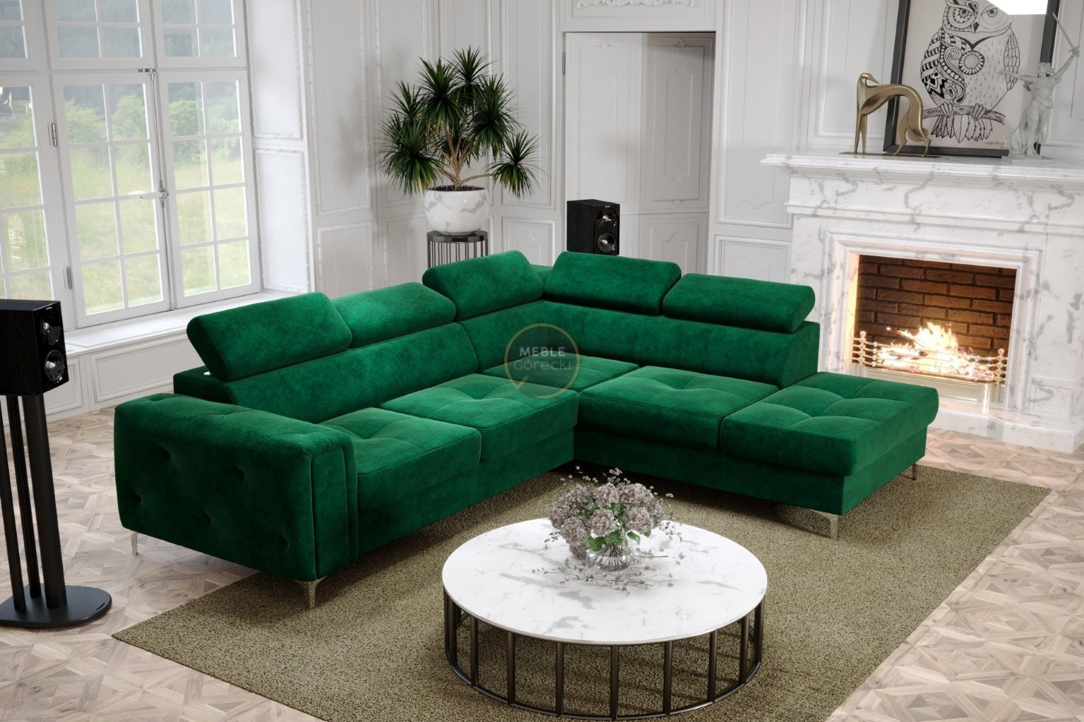 Kolekcia čalúneného nábytku Orion je niečo, čo nikde inde nenájdete! Charakteristickým prvkom sú krásne zdobené, prešívané boky v štýle glamour. Okrem estetických prvkov stojí za to venovať pozornosť dokončeniu v podobe nastaviteľných opierok hlavy, ktoré uľahčia prispôsobenie výšky operadla tak, aby bola pre vás ideálna. Vysoké 13 cm kovové nohy podčiarkujú celok a dodávajú konštrukcii ľahkosť.