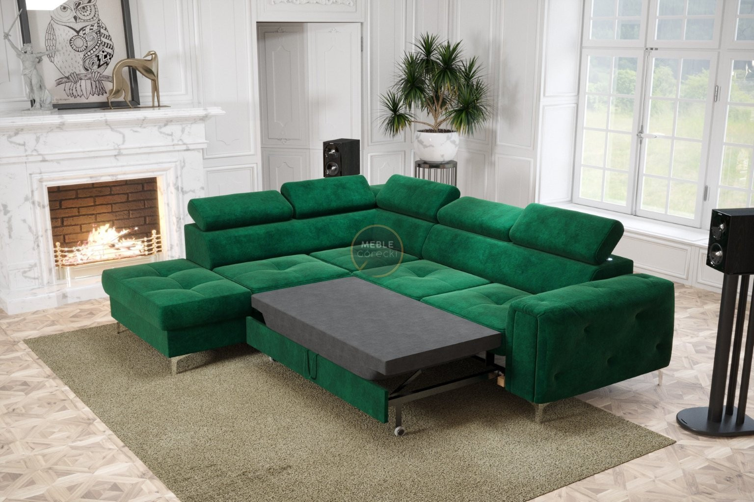 Kolekcia čalúneného nábytku Orion je niečo, čo nikde inde nenájdete! Charakteristickým prvkom sú krásne zdobené, prešívané boky v štýle glamour. Okrem estetických prvkov stojí za to venovať pozornosť dokončeniu v podobe nastaviteľných opierok hlavy, ktoré uľahčia prispôsobenie výšky operadla tak, aby bola pre vás ideálna. Vysoké 13 cm kovové nohy podčiarkujú celok a dodávajú konštrukcii ľahkosť.