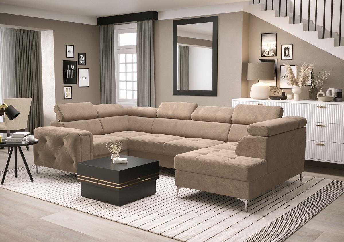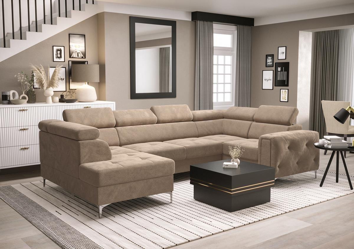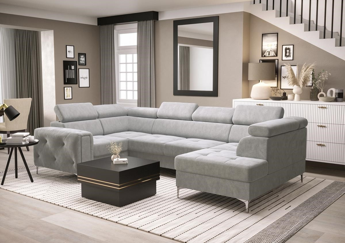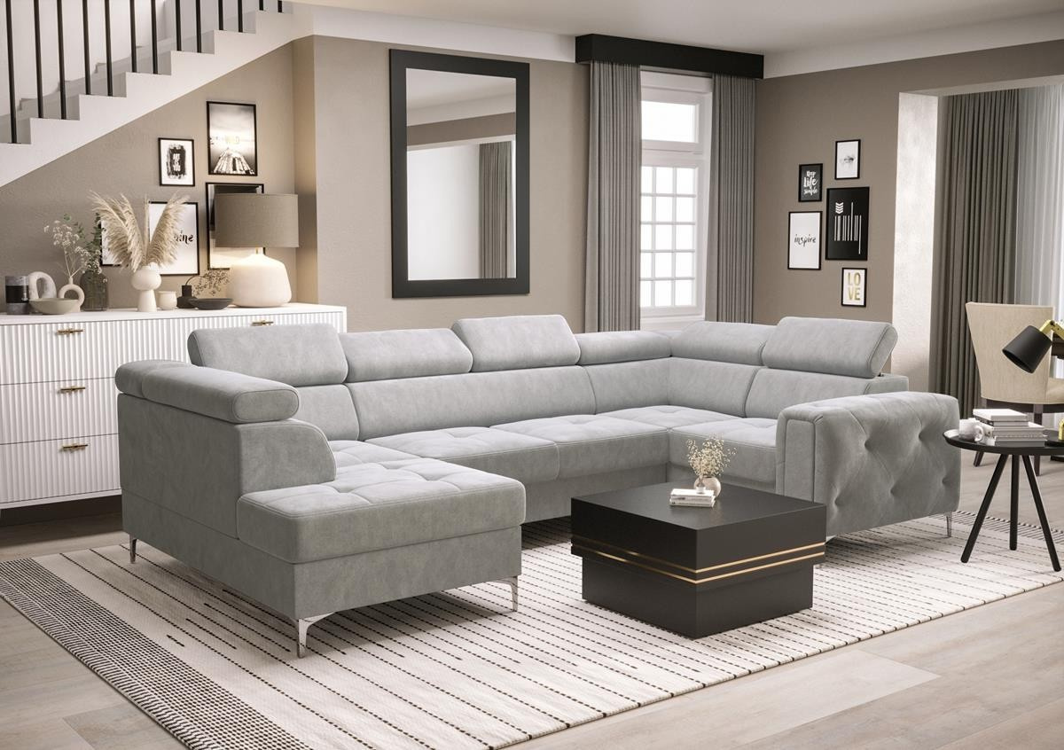 Kolekcia čalúneného nábytku Orion je niečo, čo nikde inde nenájdete! Charakteristickým prvkom sú krásne zdobené, prešívané boky v štýle glamour. Okrem estetických prvkov stojí za to venovať pozornosť dokončeniu v podobe nastaviteľných opierok hlavy, ktoré uľahčia prispôsobenie výšky operadla tak, aby bola pre vás ideálna. Vysoké 13 cm kovové nohy podčiarkujú celok a dodávajú konštrukcii ľahkosť.