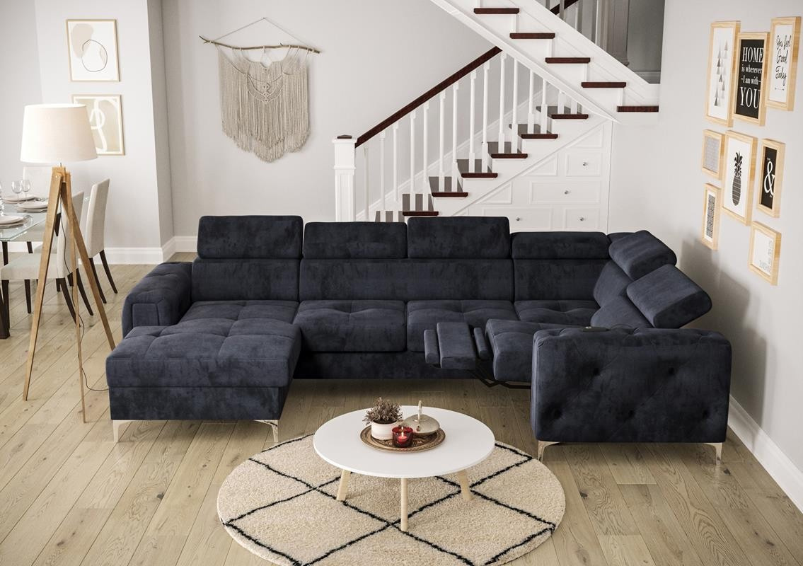 Rohová sedacia súprava ORION MAX III, relax s funkciou spania 165x320x190 cm - modrá, pravá