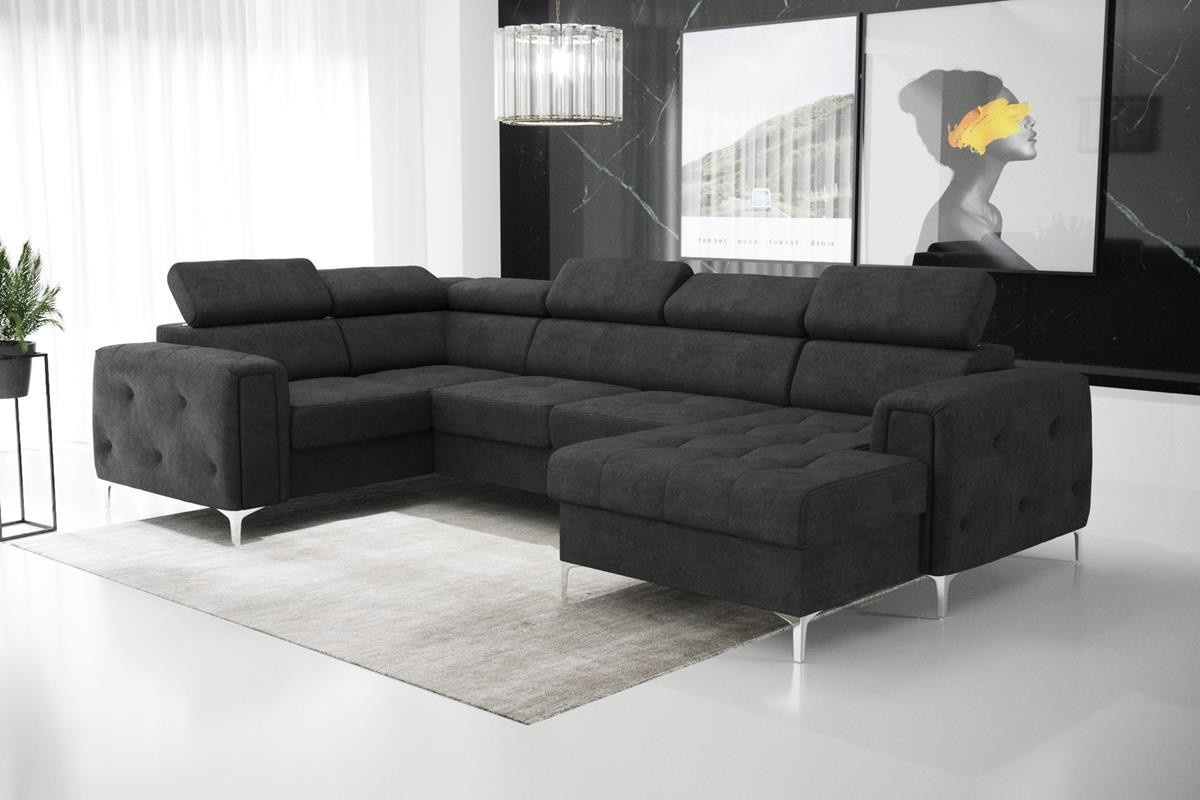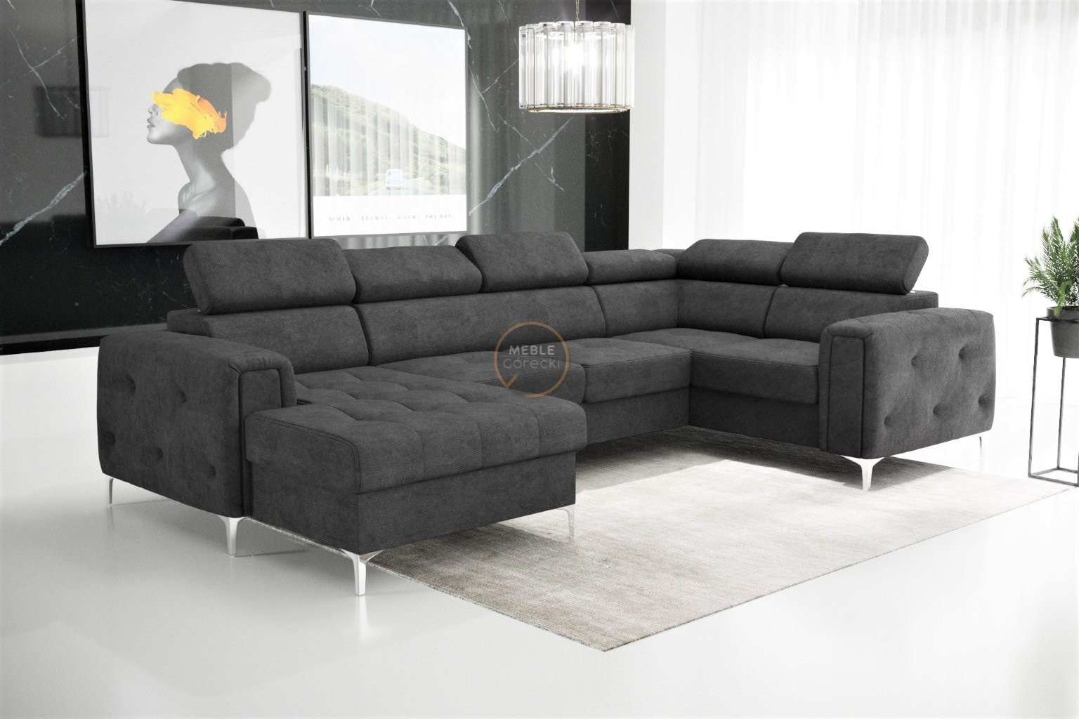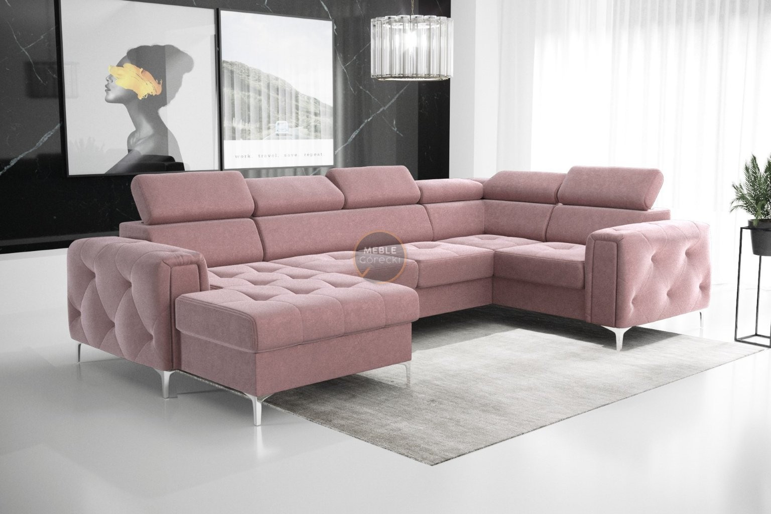 Kolekcia čalúneného nábytku Orion je niečo, čo nikde inde nenájdete! Charakteristickým prvkom sú krásne zdobené, prešívané boky v štýle glamour. Okrem estetických prvkov stojí za to venovať pozornosť dokončeniu v podobe nastaviteľných opierok hlavy, ktoré uľahčia prispôsobenie výšky operadla tak, aby bola pre vás ideálna. Vysoké 13 cm kovové nohy podčiarkujú celok a dodávajú konštrukcii ľahkosť.