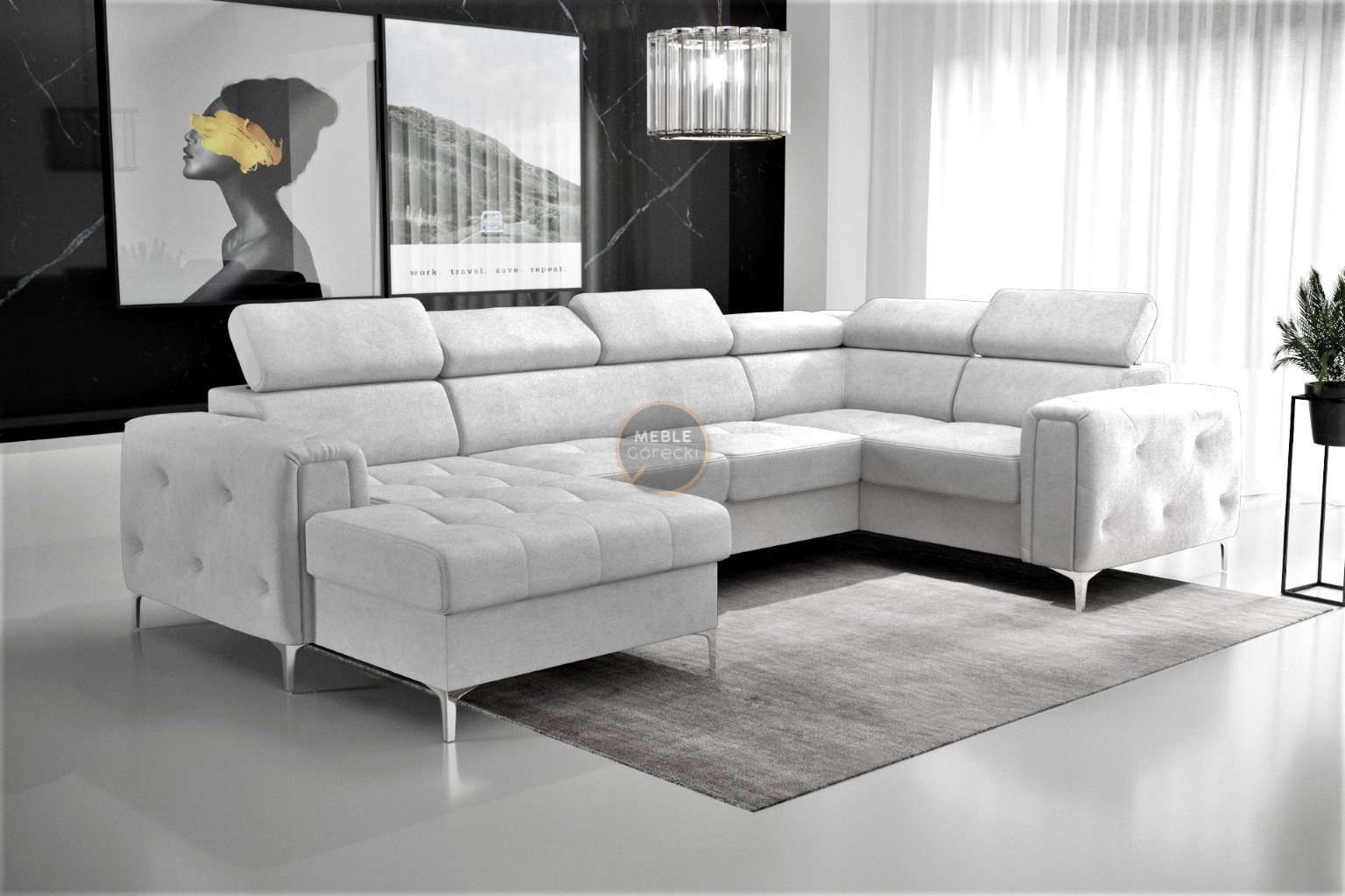 Kolekcia čalúneného nábytku Orion je niečo, čo nikde inde nenájdete! Charakteristickým prvkom sú krásne zdobené, prešívané boky v štýle glamour. Okrem estetických prvkov stojí za to venovať pozornosť dokončeniu v podobe nastaviteľných opierok hlavy, ktoré uľahčia prispôsobenie výšky operadla tak, aby bola pre vás ideálna. Vysoké 13 cm kovové nohy podčiarkujú celok a dodávajú konštrukcii ľahkosť.