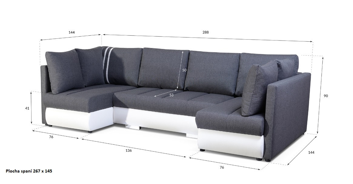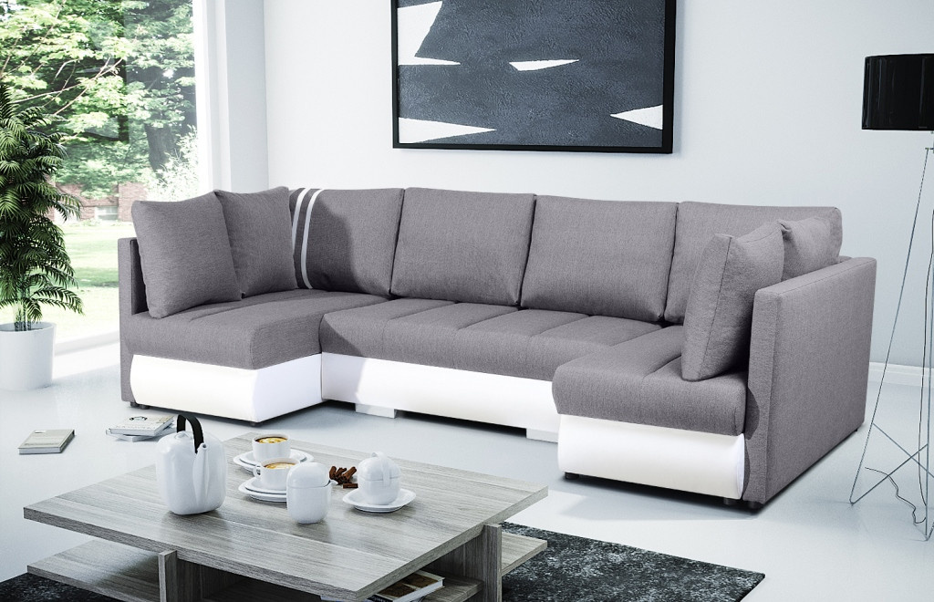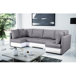 Rohová pohovka R-CITY U je elegantná pohovka v tvare U s pomerne univerzálnym tvarom, takže ju možno bez väčších problémov umiestniť k stene alebo do stredu miestnosti - je to samostatne stojaci kus nábytku s čalúneným operadlom. Rozkladacia rohová pohovka s automatickým systémom MOS, ktorý podporuje proces rozkladania, je vybavená tromi nádobami na lôžkoviny a má funkciu spania. Pevnú a odolnú konštrukciu tvorí drevený rám a priestor pod čalúnením je zakončený vlnitou pružinou a čalúnnickou penou, vďaka čomu na nábytku nezostávajú nevzhľadné preliačiny ani deformácie. Ozdobné chrómové nožičky sú akcentom, ktorý dodáva nábytku originalitu a ľahkosť. Rohová pohovka pre viac osôb je kus nábytku kompletne čalúnený kvalitnou látkou, ktorej farbu si môžete vybrať. Rohová sedacia súprava R-CITY U s bočnicami v základnom vyhotovení je doplnená vložkami z ekokože. Súčasťou balenia sú vankúše, ktoré dodajú nábytku estetický nádych.
