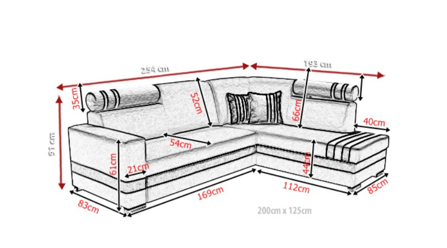 - rohová pohovka je k dispozícii v pravom alebo ľavom prevedení