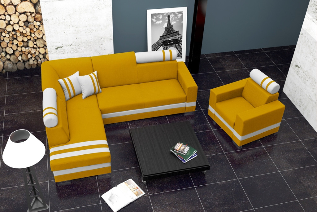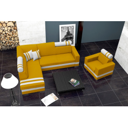 Rohová sedacia súprava R1 má moderný tvar, ktorý osloví náročných používateľov, ktorí ocenia nielen vysokú estetiku nábytku, ale aj jeho praktickosť a pohodlie pri každodennom používaní. Rohová pohovka v tvare písmena L je k dispozícii v pravej a ľavej verzii, takže si každý môže vybrať variant, ktorý najlepšie vyhovuje jeho individuálnym preferenciám. Rohová sedacia súprava s bočnicami sa bude skvele hodiť do obývačky alebo aj do obývacej izby, pretože hostia na nej budú môcť spať vďaka funkcii spania, ktorá umožňuje rozkladanie nábytku. Moderná rohová sedacia súprava je vyplnená vlnitými pružinami a čalúnnickou penou, vďaka čomu si nábytok zachováva požadovanú pružnosť. Voľne stojaca rohová pohovka s dreveným rámom a chrómovými nohami je doplnená ozdobnými vankúšmi. Rohová rozkladacia pohovka je vybavená dvoma zaoblenými opierkami hlavy, ktoré zaručujú maximálne pohodlie pri relaxácii. Model R1 je vybavený priestranným úložným priestorom na posteľnú bielizeň, ktorý vám umožní bez väčších problémov uložiť prikrývky, periny a vankúše a nezaberať cenné miesto v komodách a šatníkoch.