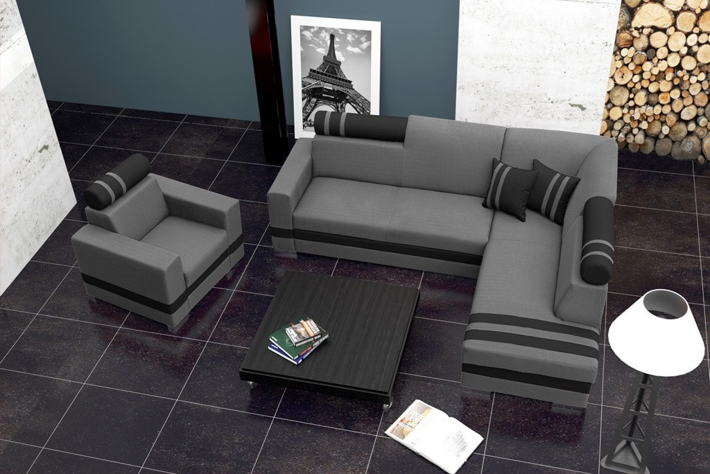 Rohová sedacia súprava R1 má moderný tvar, ktorý osloví náročných používateľov, ktorí ocenia nielen vysokú estetiku nábytku, ale aj jeho praktickosť a pohodlie pri každodennom používaní. Rohová pohovka v tvare písmena L je k dispozícii v pravej a ľavej verzii, takže si každý môže vybrať variant, ktorý najlepšie vyhovuje jeho individuálnym preferenciám. Rohová sedacia súprava s bočnicami sa bude skvele hodiť do obývačky alebo aj do obývacej izby, pretože hostia na nej budú môcť spať vďaka funkcii spania, ktorá umožňuje rozkladanie nábytku. Moderná rohová sedacia súprava je vyplnená vlnitými pružinami a čalúnnickou penou, vďaka čomu si nábytok zachováva požadovanú pružnosť. Voľne stojaca rohová pohovka s dreveným rámom a chrómovými nohami je doplnená ozdobnými vankúšmi. Rohová rozkladacia pohovka je vybavená dvoma zaoblenými opierkami hlavy, ktoré zaručujú maximálne pohodlie pri relaxácii. Model R1 je vybavený priestranným úložným priestorom na posteľnú bielizeň, ktorý vám umožní bez väčších problémov uložiť prikrývky, periny a vankúše a nezaberať cenné miesto v komodách a šatníkoch.
