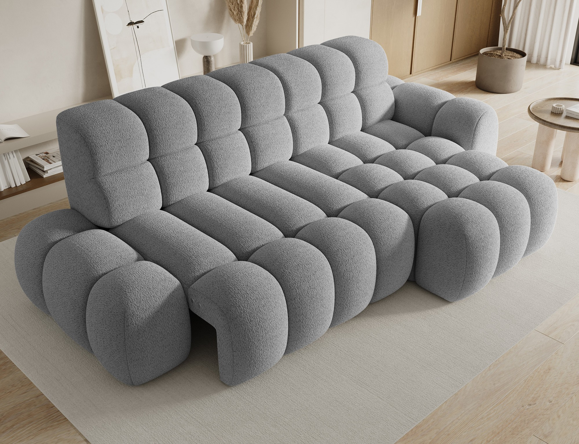 Rohová sedačka Ceedro je moderná rohová sedacia súprava dostupná v troch skupinách látok: Classic, Prestige a Premium. Kombinuje štýlový vzhľad s vysokou funkčnosťou, čo z neho robí ideálnu voľbu pre moderné interiéry. S rozmermi 283x98x165 cm ponúka priestrannosť a pohodlie, zatiaľ čo čalúnené chrbty umožňujú voľné umiestnenie v obývacej izbe. Pohodlie pri sedení je zabezpečené vysoko kvalitnými materiálmi: HR penou a penou T2315 v sedadle, zakončenými vrstvou T2130, čo zaisťuje odolnosť, pružnosť a príjemné používanie. Operadlo je vyplnené penou T2540 a T2315, čo zaisťuje správnu oporu chrbta. Ceedro je vybavené elektrickým predĺžením sedadla, ktoré umožňuje nastavenie hĺbky pre ešte väčšie pohodlie prispôsobené individuálnym potrebám. Funkcia spania z neho robí ideálny dodatočný priestor na spanie. Plastové čierne klzáky na nábytok mu dodávajú ľahký a moderný charakter a zároveň uľahčujú jeho pohyb po podlahe. Ceedro je vynikajúcou voľbou pre tých, ktorí hľadajú modernú rohovú pohovku, ktorá kombinuje dizajn, pohodlie a praktické riešenia pre každodenné použitie.