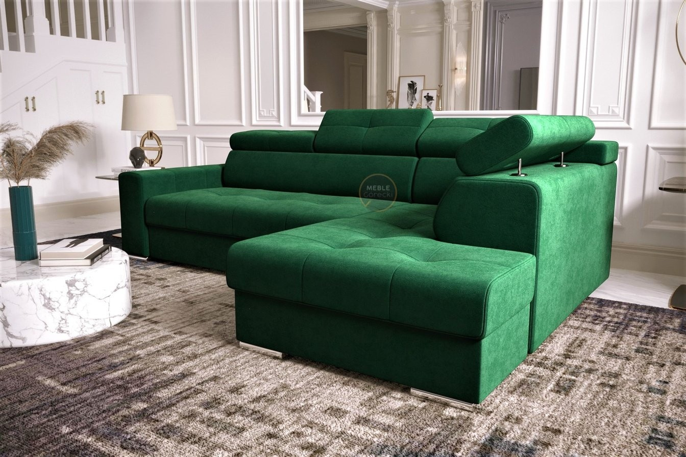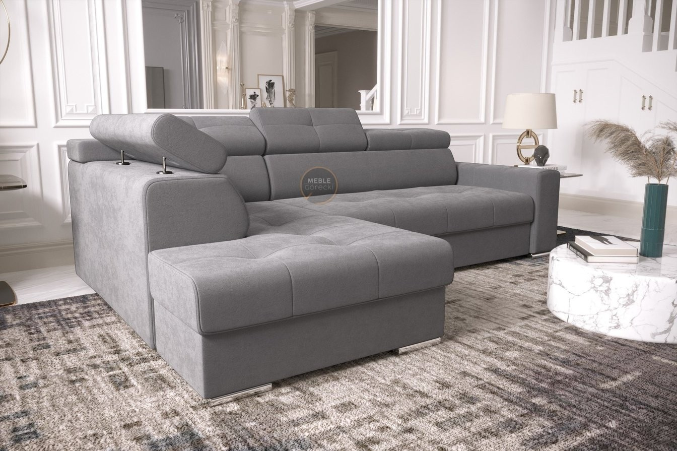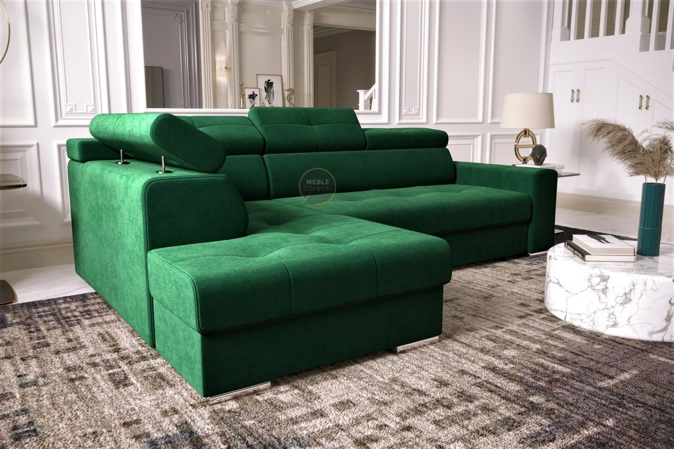 Rohová sedacia súprava s funkciou spania MARGO I 260×185 - modrá, pravá