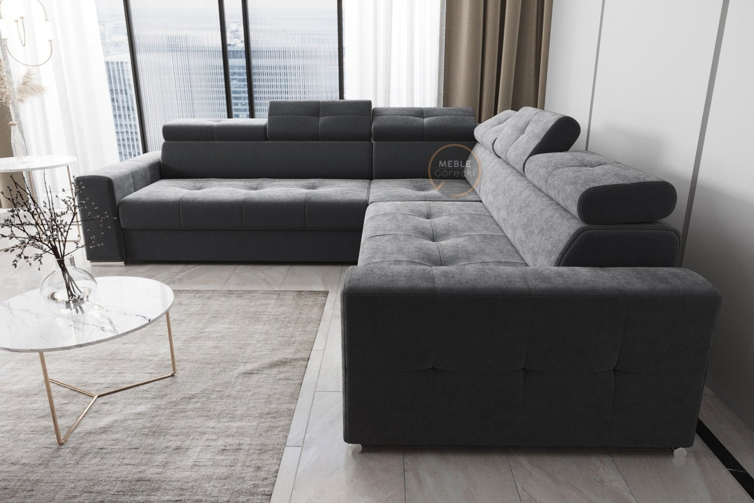 Rohová sedacia súprava s funkciou spania MARGO MAX 270x270 - sivá, ľavá