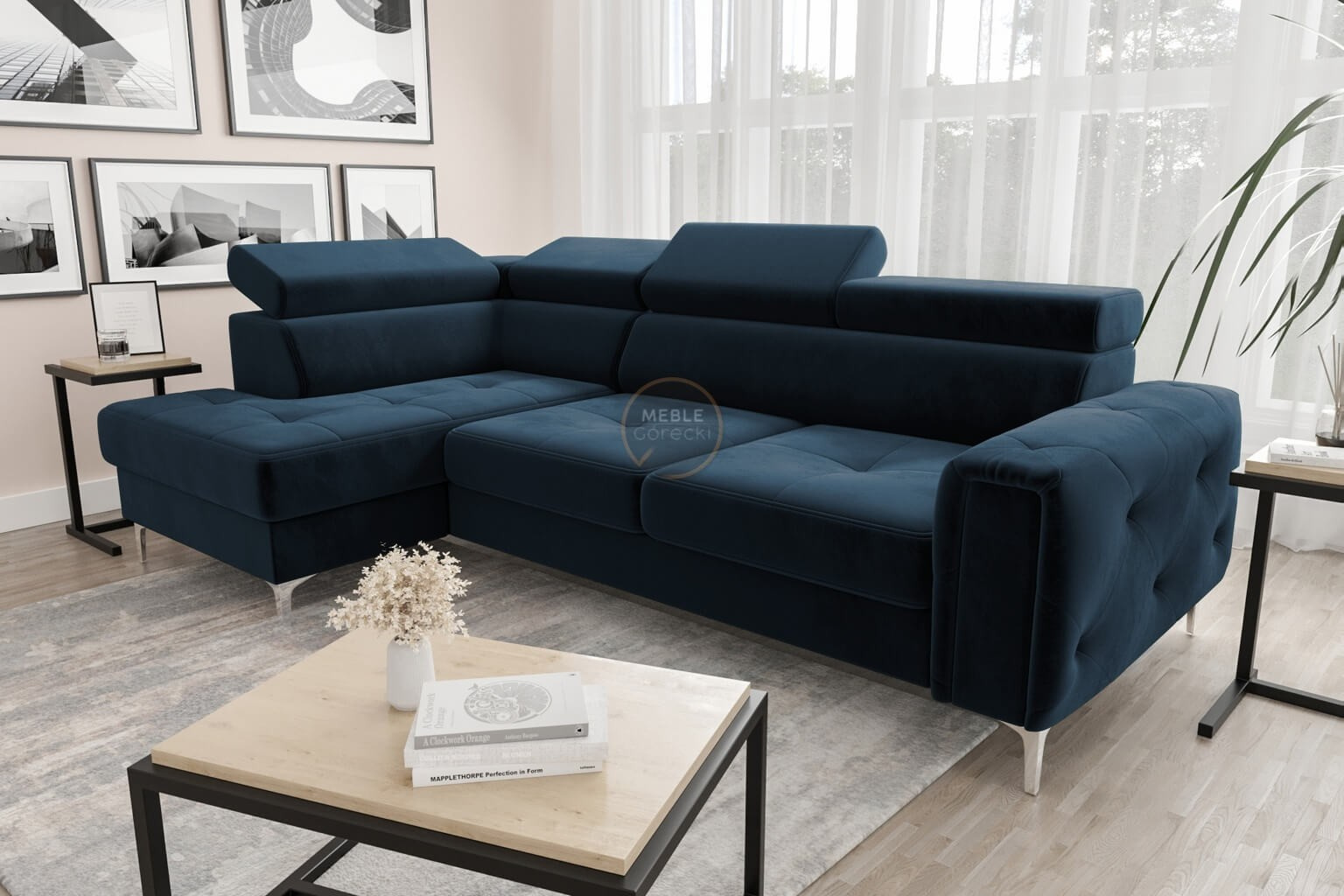 Rohová sedacia súprava s funkciou spania ORION 165x255 - modrá, ľavá