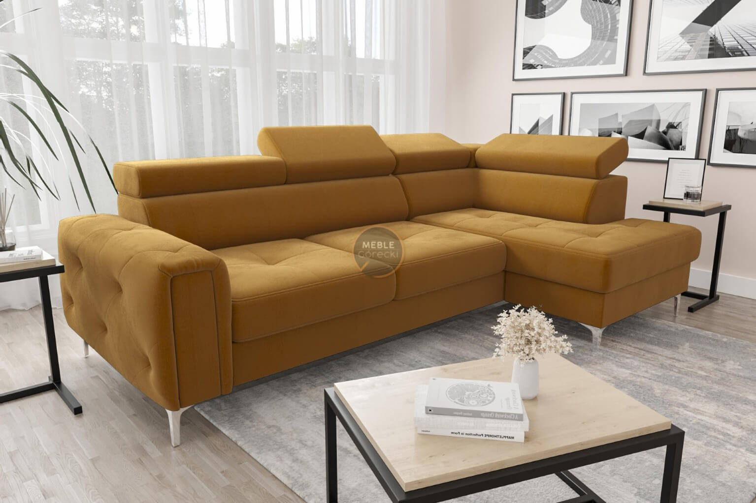 Rohová sedacia súprava s funkciou spania ORION 165x255 - žltá, pravá