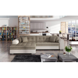 Rohová sedacia súprava SORENTO je vyrobená z kvalitných materiálov.Konštrukcia sedacej súpravy je vyrobená z kombinácie dreva a drevotriesky. Sedacia časť je vyrobená v kombinácii polyuretánovej peny T3040 + T2542 a vlnitých pružín. Na oporu sedacej súpravy je použitá polyuretánová pena T2542.Sedacia súprava je rozkladacia pomocou rozkladu typu Delfín.