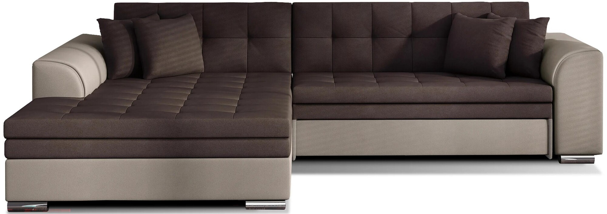 Rohová sedacia súprava SORENTO je vyrobená z kvalitných materiálov.Konštrukcia sedacej súpravy je vyrobená z kombinácie dreva a drevotriesky. Sedacia časť je vyrobená v kombinácii polyuretánovej peny T3040 + T2542 a vlnitých pružín. Na oporu sedacej súpravy je použitá polyuretánová pena T2542.Sedacia súprava je rozkladacia pomocou rozkladu typu Delfín.