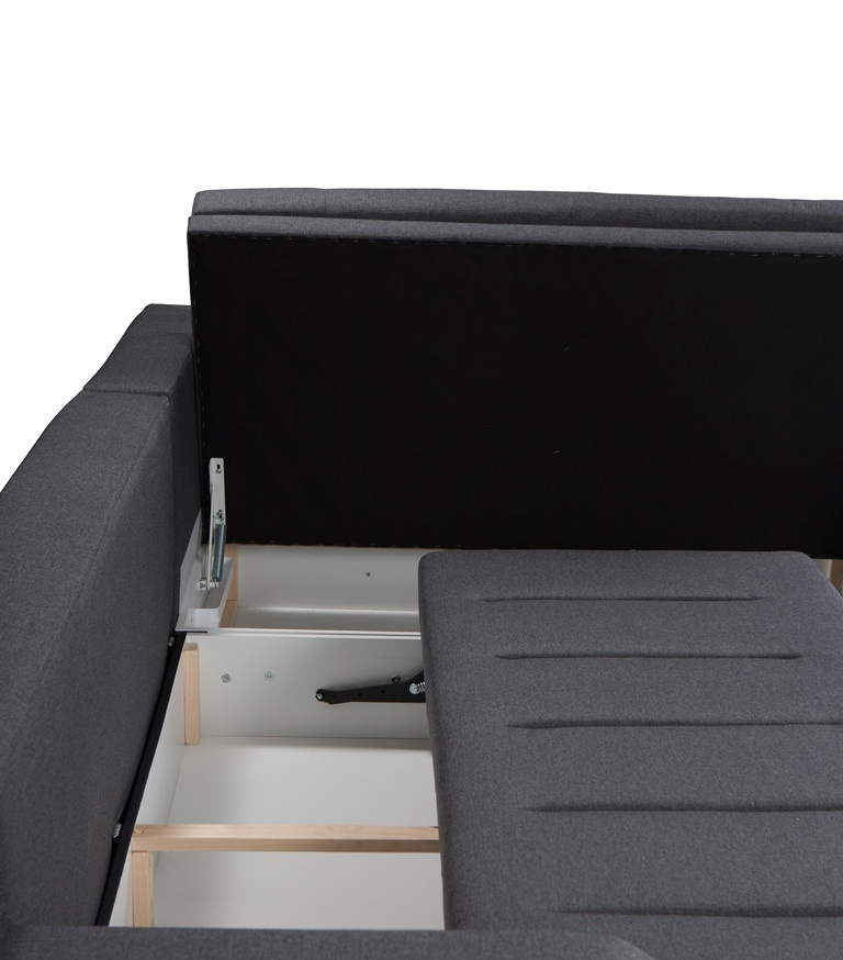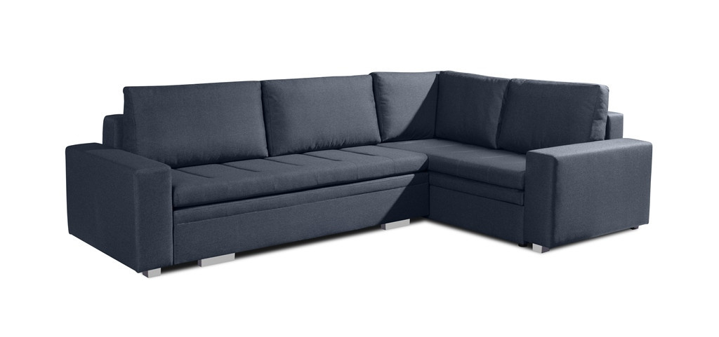 Moderná rohová sedacia súprava TIA je určená pre viac ako jednu osobu a je vybavená až dvoma kontajnermi na posteľnú bielizeň, do ktorých môžete bez väčších problémov uložiť vankúše, prikrývky a periny. Rohová pohovka v tvare písmena L je k dispozícii v pravom alebo ľavom prevedení. Štýlová rohová pohovka s funkciou spania je vybavená aj automatickým rozkladom, vďaka ktorému sa nábytok dá rýchlo a efektívne rozložiť. Rohová sedacia súprava pre viac osôb s bočnicami je vyplnená vlnitou pružinou na ploche na spanie, sedáku a operadle a tiež čalúnnickou penou T-30. Voľne stojaca rohová sedacia súprava je umiestnená na ozdobných chrómových nožičkách, ktoré podčiarkujú modernistické usporiadanie nábytku. Odolný a stabilný kus nábytku s dreveným rámom má čalúnenú zadnú časť, vďaka čomu ho možno umiestniť nielen k stene, ale aj do centrálnej časti miestnosti. Rohová rozkladacia pohovka TIA do obývačky môže byť čalúnená rôznymi látkami.