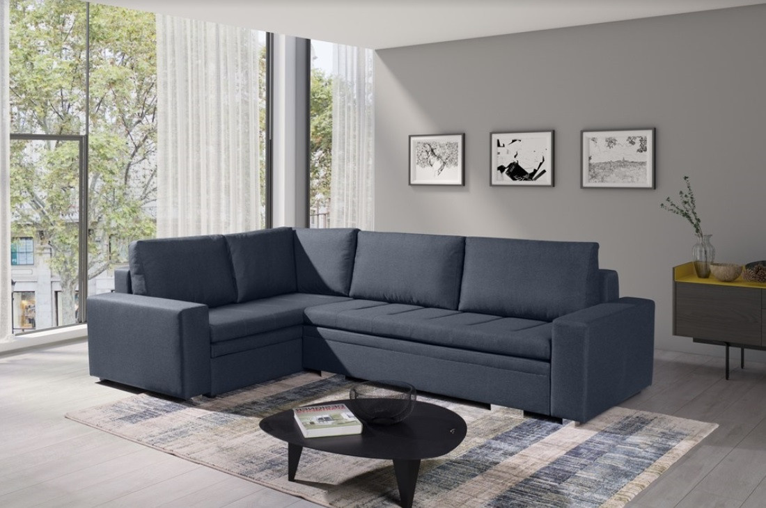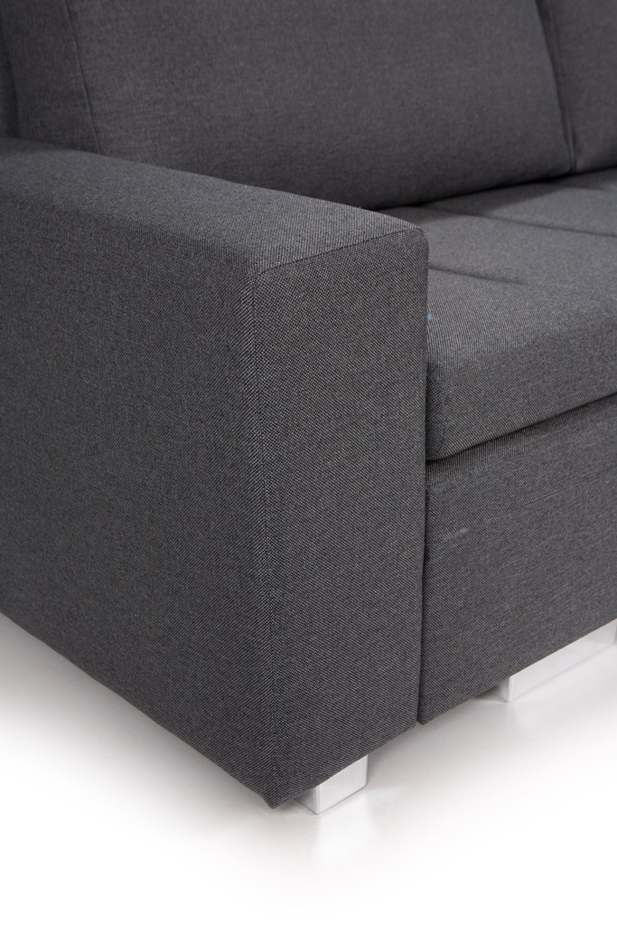 Moderná rohová sedacia súprava TIA je určená pre viac ako jednu osobu a je vybavená až dvoma kontajnermi na posteľnú bielizeň, do ktorých môžete bez väčších problémov uložiť vankúše, prikrývky a periny. Rohová pohovka v tvare písmena L je k dispozícii v pravom alebo ľavom prevedení. Štýlová rohová pohovka s funkciou spania je vybavená aj automatickým rozkladom, vďaka ktorému sa nábytok dá rýchlo a efektívne rozložiť. Rohová sedacia súprava pre viac osôb s bočnicami je vyplnená vlnitou pružinou na ploche na spanie, sedáku a operadle a tiež čalúnnickou penou T-30. Voľne stojaca rohová sedacia súprava je umiestnená na ozdobných chrómových nožičkách, ktoré podčiarkujú modernistické usporiadanie nábytku. Odolný a stabilný kus nábytku s dreveným rámom má čalúnenú zadnú časť, vďaka čomu ho možno umiestniť nielen k stene, ale aj do centrálnej časti miestnosti. Rohová rozkladacia pohovka TIA do obývačky môže byť čalúnená rôznymi látkami.