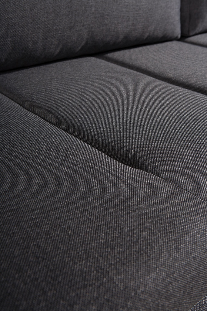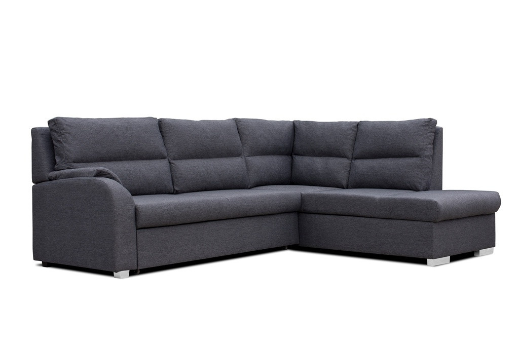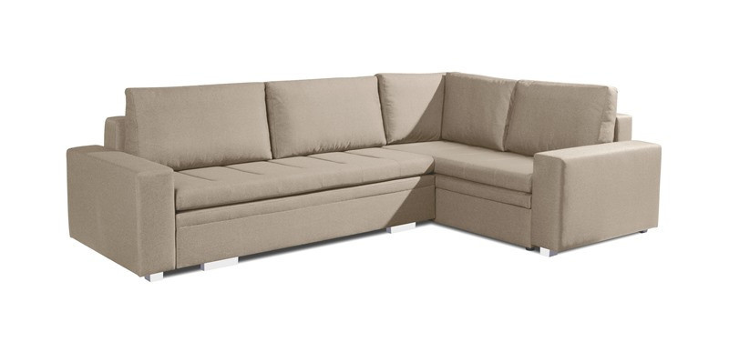 Moderná rohová sedacia súprava TIA je určená pre viac ako jednu osobu a je vybavená až dvoma kontajnermi na posteľnú bielizeň, do ktorých môžete bez väčších problémov uložiť vankúše, prikrývky a periny. Rohová pohovka v tvare písmena L je k dispozícii v pravom alebo ľavom prevedení. Štýlová rohová pohovka s funkciou spania je vybavená aj automatickým rozkladom, vďaka ktorému sa nábytok dá rýchlo a efektívne rozložiť. Rohová sedacia súprava pre viac osôb s bočnicami je vyplnená vlnitou pružinou na ploche na spanie, sedáku a operadle a tiež čalúnnickou penou T-30. Voľne stojaca rohová sedacia súprava je umiestnená na ozdobných chrómových nožičkách, ktoré podčiarkujú modernistické usporiadanie nábytku. Odolný a stabilný kus nábytku s dreveným rámom má čalúnenú zadnú časť, vďaka čomu ho možno umiestniť nielen k stene, ale aj do centrálnej časti miestnosti. Rohová rozkladacia pohovka TIA do obývačky môže byť čalúnená rôznymi látkami.