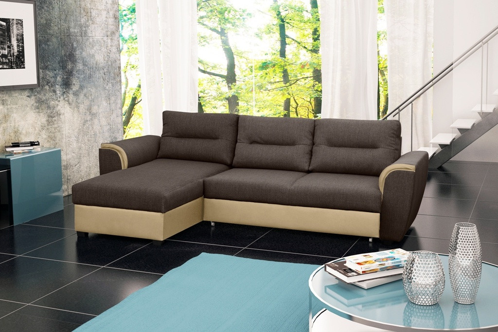 Moderná rohová sedacia súprava TOMEK je ideálna do interiéru obývacej izby, ktorá je na jednej strane reprezentatívnym priestorom a na druhej strane miestom na odpočinok. Rohová pohovka v tvare písmena L je k dispozícii s dvoma variantmi strán - pravou alebo ľavou - takže sa dá prispôsobiť akémukoľvek tvaru miestnosti. Rohová sedacia súprava TOMEK s bočnicami na sedáku je vyplnená vlnitou pružinou a čalúnením z peny T-30, takže na sedacej súprave nevznikajú nevzhľadné deformácie spôsobené sedením. Predstavená rohová pohovka s dreveným rámom zaručuje svojim používateľom komfort a pohodlie pri sedení, ako aj pevnosť konštrukcie, ktorú úplne dopĺňajú chrómové nohy. Keďže rohová pohovka je samostatne stojaci kus nábytku, má aj čalúnené operadlo - možno ju umiestniť nielen k stene, ale aj do stredu miestnosti. Model TOMEK je vybavený úložným priestorom na lôžkoviny, do ktorého môžete uložiť prikrývky, vankúše a periny. Rohová pohovka s bočnicami má funkciu spania, ktorá umožňuje jej rozloženie. Ponúkaná rohová sedacia súprava môže byť vyrobená v širokej škále farieb.