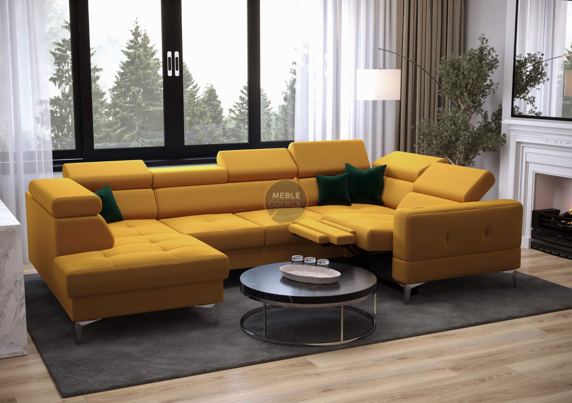 Rohová sedacia súprava TOSCANIA MAX I, relax s funkciou spania 170x350x185 cm - žltá, pravá