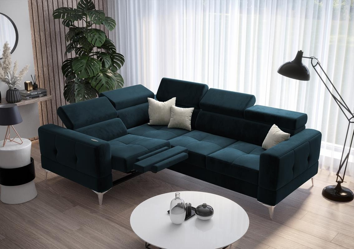 Rohová sedacia súprava TOSCANIA, relax s funkciou spania 185x250 - modrá, ľavá