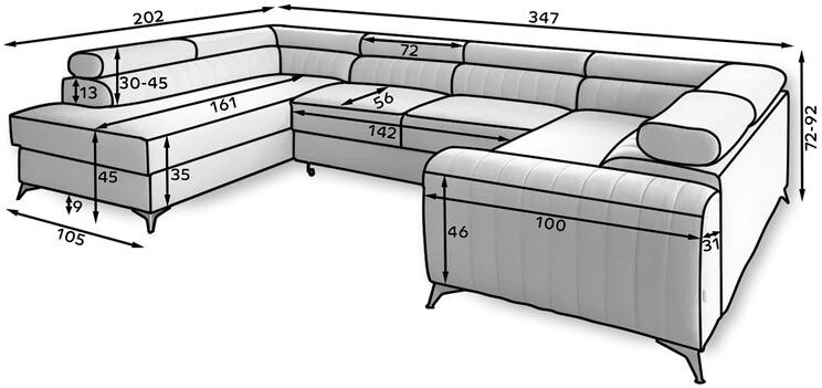 Sedacia súprava LOUIS sa pýši moderným dizajnom, ktorý sa ľahko začlení do akéhokoľvek interiéru. Jej elegantné línie a jemný povrch dodávajú priestoru nádych luxusu. So šírkou 347 cm, výškou 92 cm a hĺbkou 202 cm ponúka dostatok priestoru pre celú rodinu aj priateľov. Výška sedu 45 cm je ideálna pre pohodlné sedenie, či už relaxujete s knihou, sledujete obľúbený film alebo hostíte návštevu.