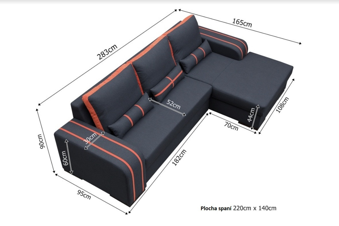 - rohová pohovka je k dispozícii v pravom a ľavom prevedení