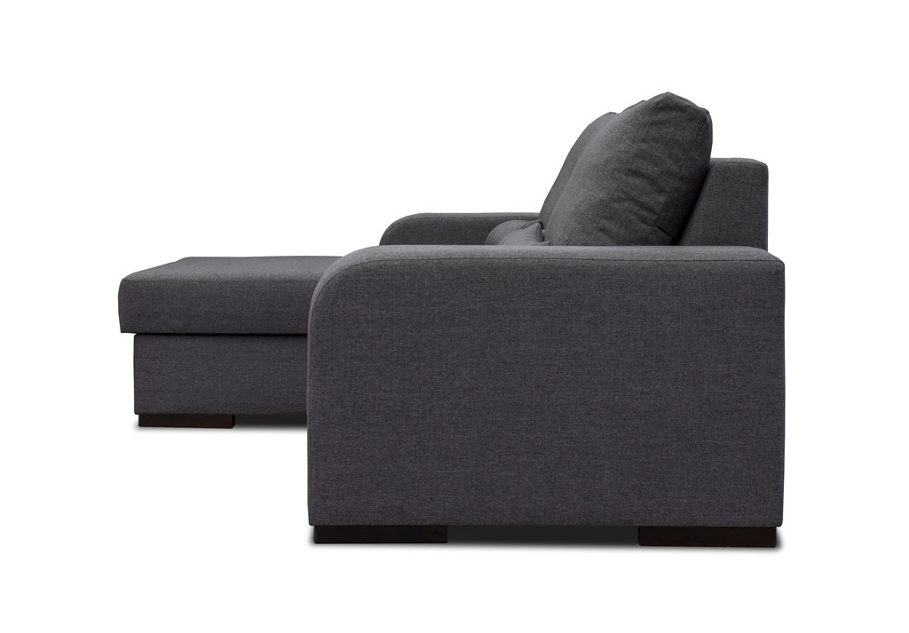 Tvarovaná rohová pohovka VIRAGO s bočnicami nájde svoje ideálne miesto v obývacej izbe. Rohová pohovka je pohodlná na každodenné používanie a obsahuje dekoratívne vankúše, ktoré zabezpečujú maximálne pohodlie pri sedení. Rohová pohovka v tvare L je k dispozícii v pravej alebo ľavej verzii, takže si ju každý môže prispôsobiť usporiadaniu svojej izby. Rohová sedacia súprava je vybavená funkciou spania, vďaka ktorej ju možno rozložiť. Rohová pohovka pre viac osôb má aj priestranný úložný priestor na lôžkoviny, do ktorého môžete uložiť prikrývky, periny a vankúše. Nábytok s dreveným rámom stojí na drevených nohách z tmavého orechového dreva. Voľne stojaca rohová sedacia súprava je vyplnená vlnitými pružinami a čalúnnickou penou, vďaka čomu si rohová sedacia súprava zachováva správnu pružnosť a nevznikajú na nej nevzhľadné deformácie alebo preliačiny. Model VIRAGO je čalúnený látkou, ktorej farby si môžete vybrať podľa individuálnych preferencií z bohatého vzorkovníka.