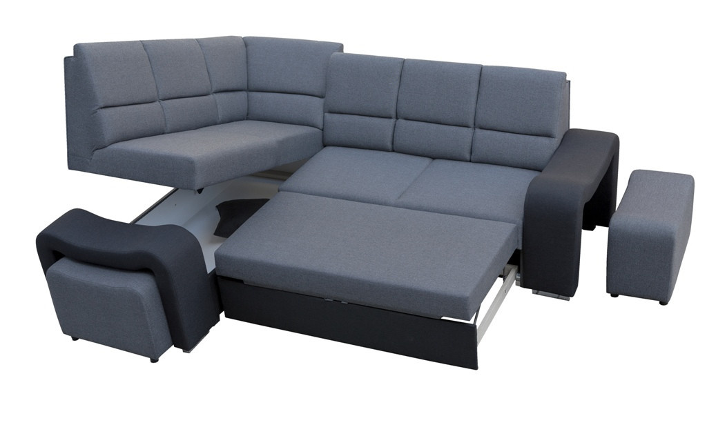 Rohová sedacia súprava WAKIKI má štýlový dizajn, ktorý zabezpečí pohodlie aj pri niekoľkohodinovom relaxovaní s rodinou alebo priateľmi. Táto moderná rohová pohovka v tvare písmena L je k dispozícii v pravej aj ľavej verzii. Predvádzaná rohová pohovka pre viac osôb s funkciou spania umožňuje rozložiť nábytok, čím sa zabezpečí pohodlie a bezpečnosť spánku. WAKIKI je k dispozícii v širokej škále farieb, takže si každý môže vytvoriť model podľa svojho individuálneho vkusu a preferencií. Moderná rohová pohovka do obývačky je doplnená dvoma taburetkami, ktoré vytvárajú ďalšie miesto na sedenie a sú vhodné aj ako podnožka. Do nábytku boli zabudované špeciálne úložné priestory pre vyššie uvedené stoličky, kde ich možno voľne uložiť, keď sa nepoužívajú. Nábytok stojí na drevenom ráme s chrómovými nohami, ktoré mu dodávajú moderný vzhľad. Voľne stojaca rohová sedacia súprava WAKIKI má aj úložný priestor na posteľnú bielizeň, do ktorého sa ľahko zmestia prikrývky, vankúše alebo deky.
