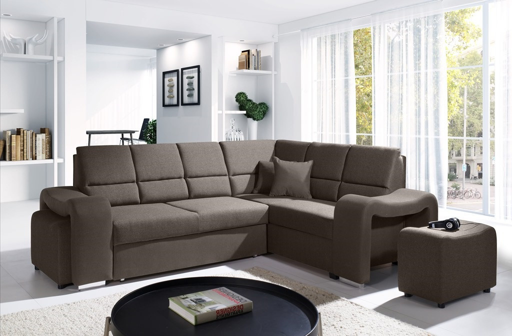 Rohová sedacia súprava WAKIKI má štýlový dizajn, ktorý zabezpečí pohodlie aj pri niekoľkohodinovom relaxovaní s rodinou alebo priateľmi. Táto moderná rohová pohovka v tvare písmena L je k dispozícii v pravej aj ľavej verzii. Predvádzaná rohová pohovka pre viac osôb s funkciou spania umožňuje rozložiť nábytok, čím sa zabezpečí pohodlie a bezpečnosť spánku. WAKIKI je k dispozícii v širokej škále farieb, takže si každý môže vytvoriť model podľa svojho individuálneho vkusu a preferencií. Moderná rohová pohovka do obývačky je doplnená dvoma taburetkami, ktoré vytvárajú ďalšie miesto na sedenie a sú vhodné aj ako podnožka. Do nábytku boli zabudované špeciálne úložné priestory pre vyššie uvedené stoličky, kde ich možno voľne uložiť, keď sa nepoužívajú. Nábytok stojí na drevenom ráme s chrómovými nohami, ktoré mu dodávajú moderný vzhľad. Voľne stojaca rohová sedacia súprava WAKIKI má aj úložný priestor na posteľnú bielizeň, do ktorého sa ľahko zmestia prikrývky, vankúše alebo deky.