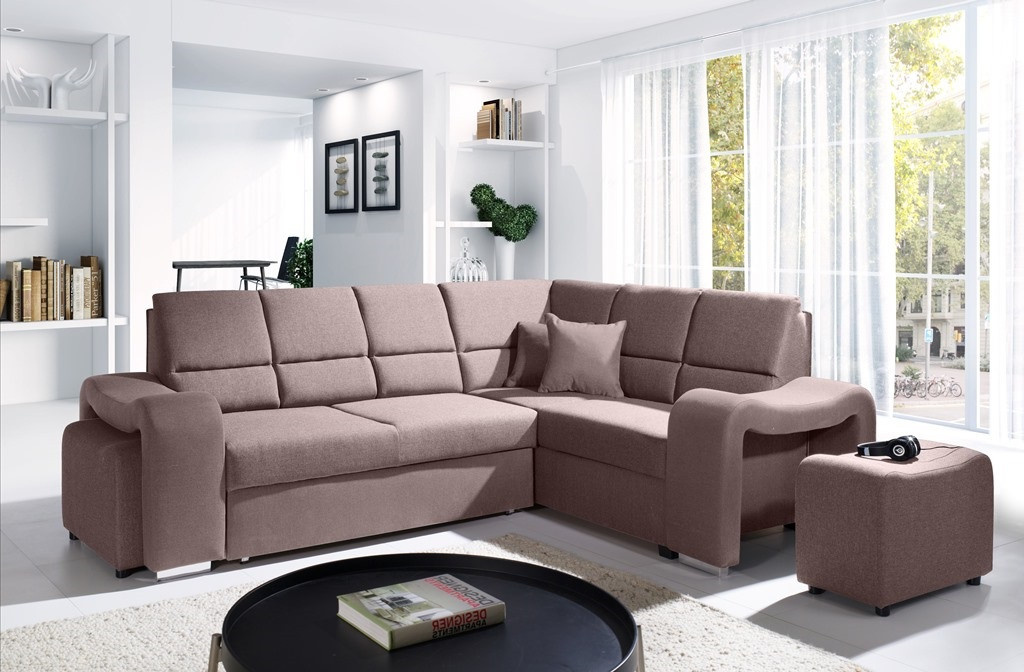 Rohová sedacia súprava WAKIKI má štýlový dizajn, ktorý zabezpečí pohodlie aj pri niekoľkohodinovom relaxovaní s rodinou alebo priateľmi. Táto moderná rohová pohovka v tvare písmena L je k dispozícii v pravej aj ľavej verzii. Predvádzaná rohová pohovka pre viac osôb s funkciou spania umožňuje rozložiť nábytok, čím sa zabezpečí pohodlie a bezpečnosť spánku. WAKIKI je k dispozícii v širokej škále farieb, takže si každý môže vytvoriť model podľa svojho individuálneho vkusu a preferencií. Moderná rohová pohovka do obývačky je doplnená dvoma taburetkami, ktoré vytvárajú ďalšie miesto na sedenie a sú vhodné aj ako podnožka. Do nábytku boli zabudované špeciálne úložné priestory pre vyššie uvedené stoličky, kde ich možno voľne uložiť, keď sa nepoužívajú. Nábytok stojí na drevenom ráme s chrómovými nohami, ktoré mu dodávajú moderný vzhľad. Voľne stojaca rohová sedacia súprava WAKIKI má aj úložný priestor na posteľnú bielizeň, do ktorého sa ľahko zmestia prikrývky, vankúše alebo deky.