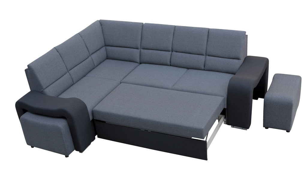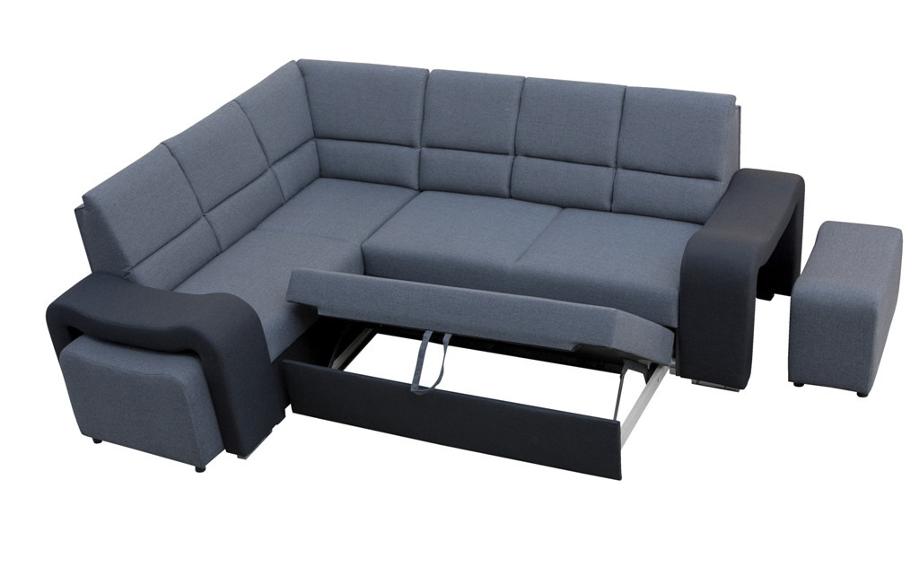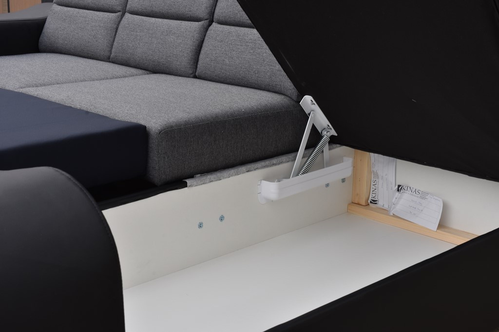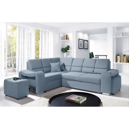 Rohová sedacia súprava WAKIKI má štýlový dizajn, ktorý zabezpečí pohodlie aj pri niekoľkohodinovom relaxovaní s rodinou alebo priateľmi. Táto moderná rohová pohovka v tvare písmena L je k dispozícii v pravej aj ľavej verzii. Predvádzaná rohová pohovka pre viac osôb s funkciou spania umožňuje rozložiť nábytok, čím sa zabezpečí pohodlie a bezpečnosť spánku. WAKIKI je k dispozícii v širokej škále farieb, takže si každý môže vytvoriť model podľa svojho individuálneho vkusu a preferencií. Moderná rohová pohovka do obývačky je doplnená dvoma taburetkami, ktoré vytvárajú ďalšie miesto na sedenie a sú vhodné aj ako podnožka. Do nábytku boli zabudované špeciálne úložné priestory pre vyššie uvedené stoličky, kde ich možno voľne uložiť, keď sa nepoužívajú. Nábytok stojí na drevenom ráme s chrómovými nohami, ktoré mu dodávajú moderný vzhľad. Voľne stojaca rohová sedacia súprava WAKIKI má aj úložný priestor na posteľnú bielizeň, do ktorého sa ľahko zmestia prikrývky, vankúše alebo deky.