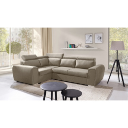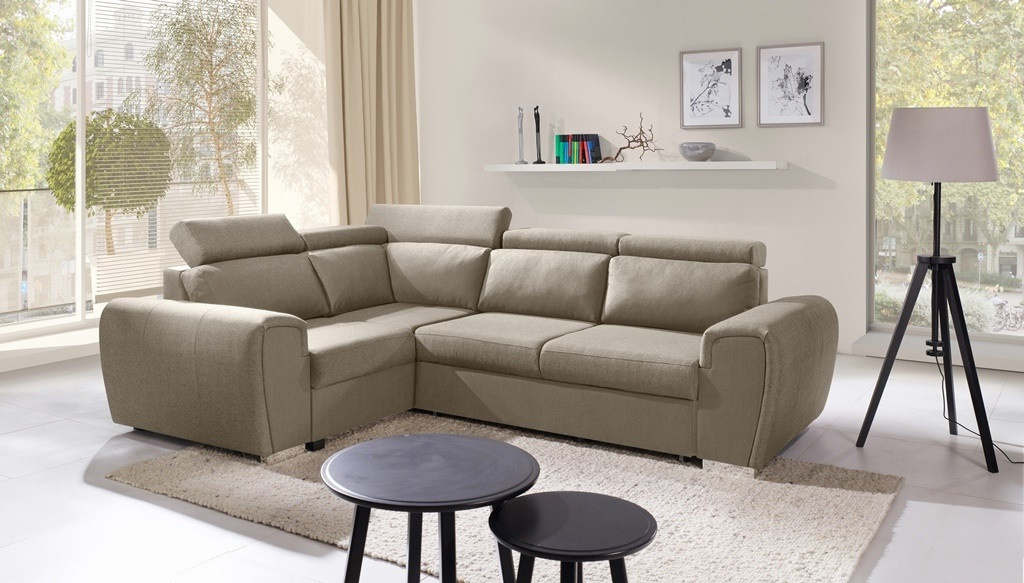 Moderná rohová pohovka WIZARO má elegantný dizajn, ktorý sa dokonale hodí do obývacej izby alebo obývačky zariadenej v industriálnej a modernistickej estetike. Rohová pohovka v tvare L s bočnicami je k dispozícii v dvoch verziách: pravej alebo ľavej. Rohová pohovka s mierne zaoblenými hranami je vybavená pohyblivými opierkami hlavy, takže si každý môže nastaviť operadlo podľa svojich individuálnych potrieb a pohodlia. Rohová súprava pre viac osôb sa dodáva s ozdobnými vankúšmi. Okrem polohovateľného operadla má rohová pohovka úložný priestor na lôžkoviny a tiež funkciu spania, takže ju možno rozložiť a zabezpečiť tak pohodlný a bezpečný nočný odpočinok pre pozvaných hostí. Rohová pohovka s dreveným rámom je vyplnená čalúnnickou penou T-30 a vlnitou pružinou na sedacej časti. Uvedené materiály zabezpečujú odolnosť, stabilitu a pevnosť konštrukcie. Štýlová rohová pohovka s chrómovými nožičkami bude nielen miestom pohodlného odpočinku, ale aj estetickým kusom nábytku, ktorý zvýrazní vytvorené usporiadanie.