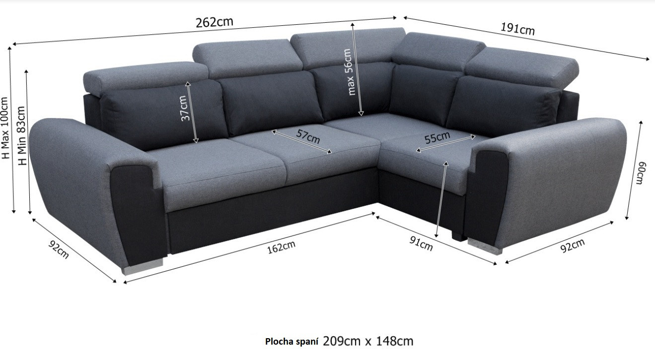 - rohová pohovka je k dispozícii v pravom alebo ľavom prevedení