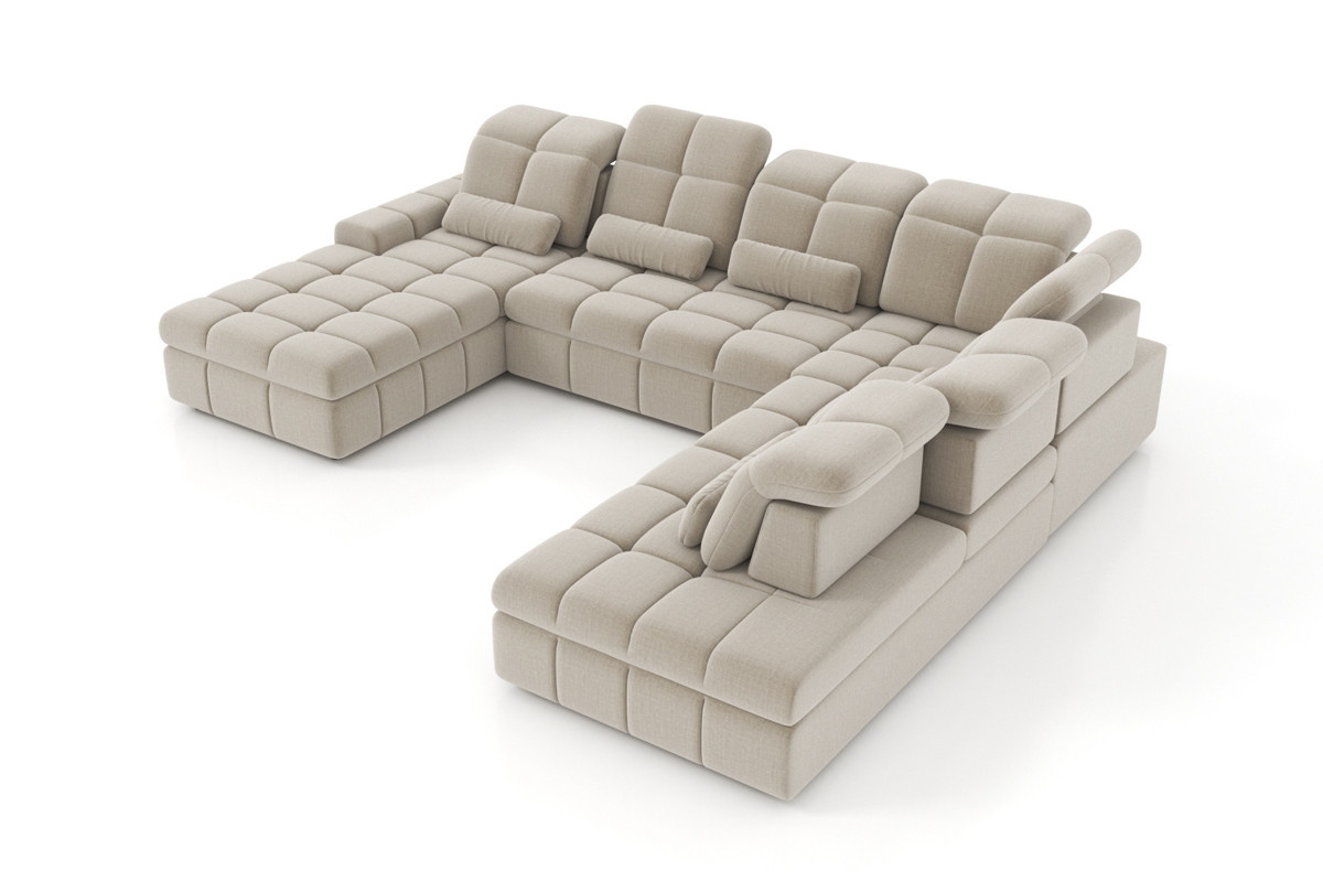 Rohová pohovka s funkciou spania Magnelio U II, šírka: 342, výška: 87/107, hĺbka: 205/280. rohová pohovka Leonardo je moderný návrh obývacieho nábytku, ktorý sa rozkladá na spanie. Okrem toho má roh Leonardo mäkké sedadlo a nastaviteľnú hĺbku sedadla.
